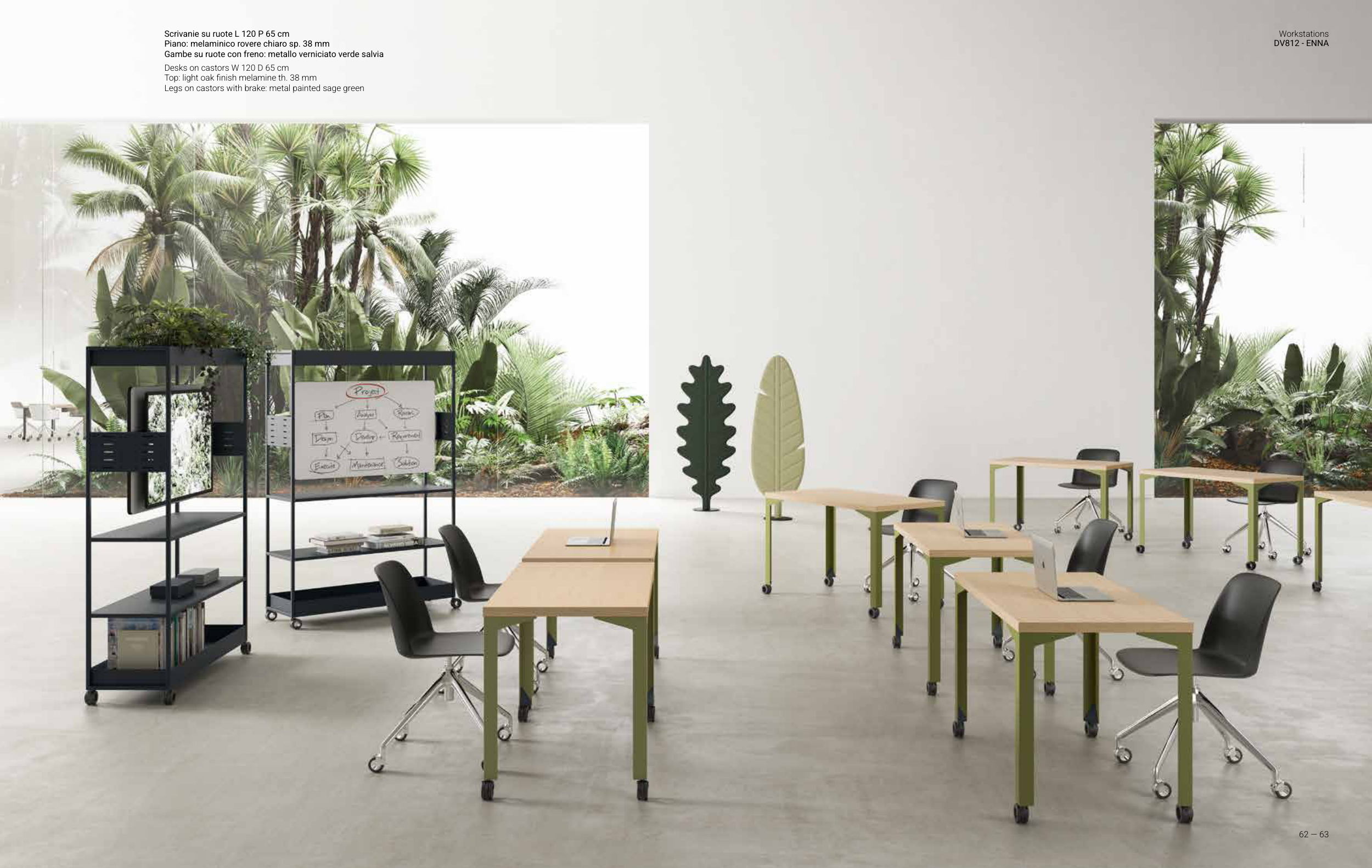 Desks on castors W 120 D 65 cm