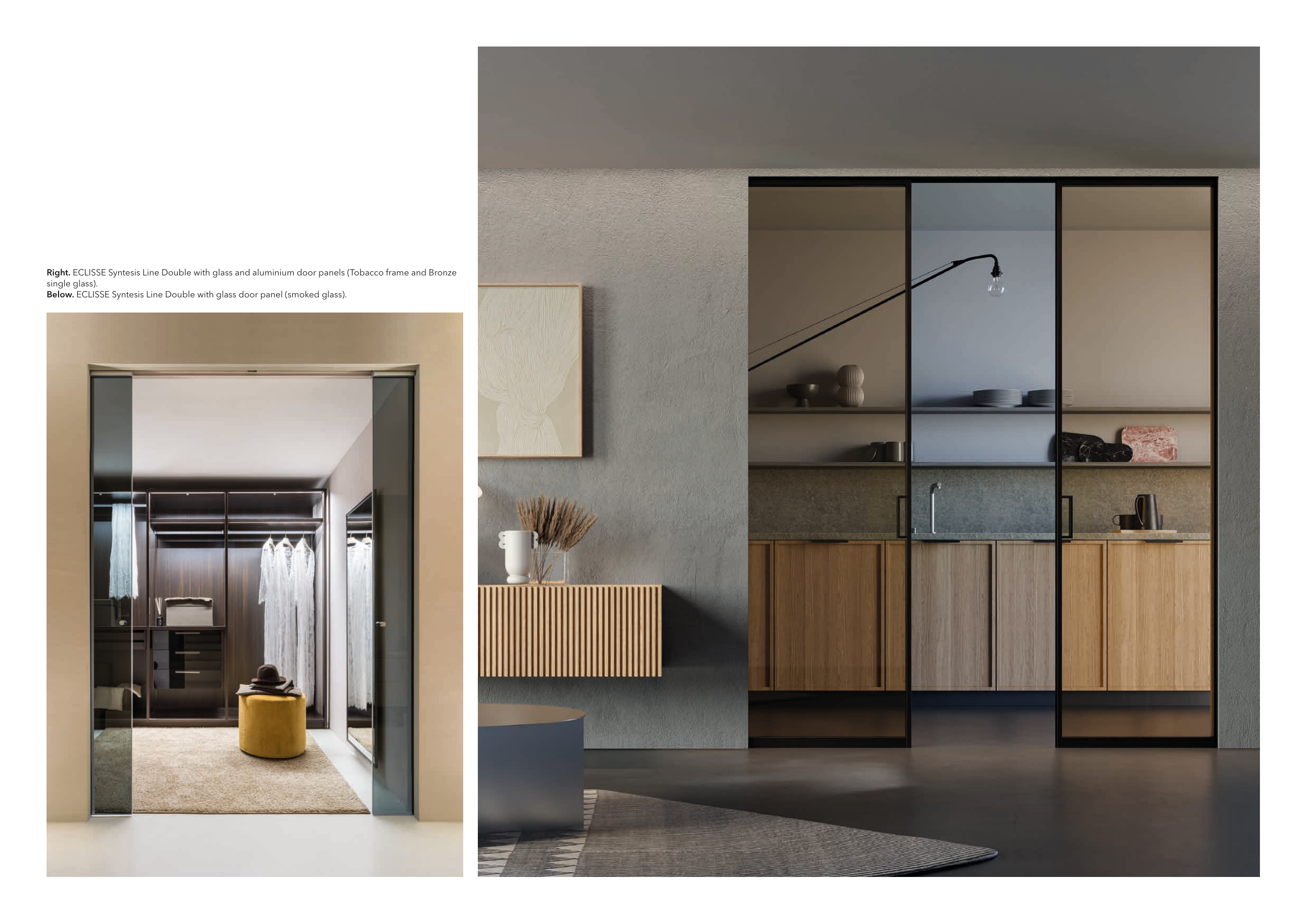 Right. ECLISSE Syntesis Line Double with glass and aluminium door panels (Tobacco frame and Bronze
