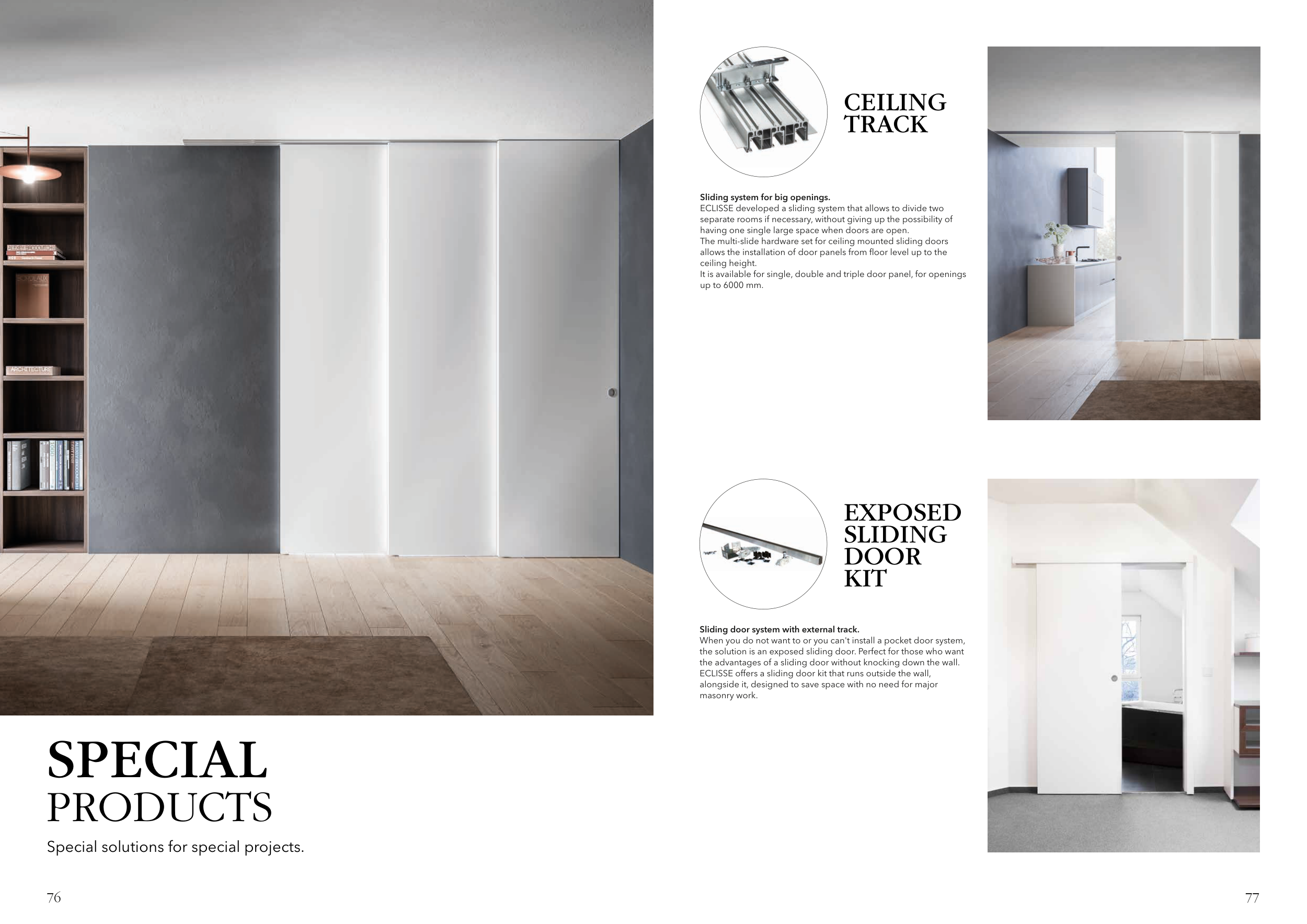 ECLISSE offers a sliding door kit that runs outside the wall,