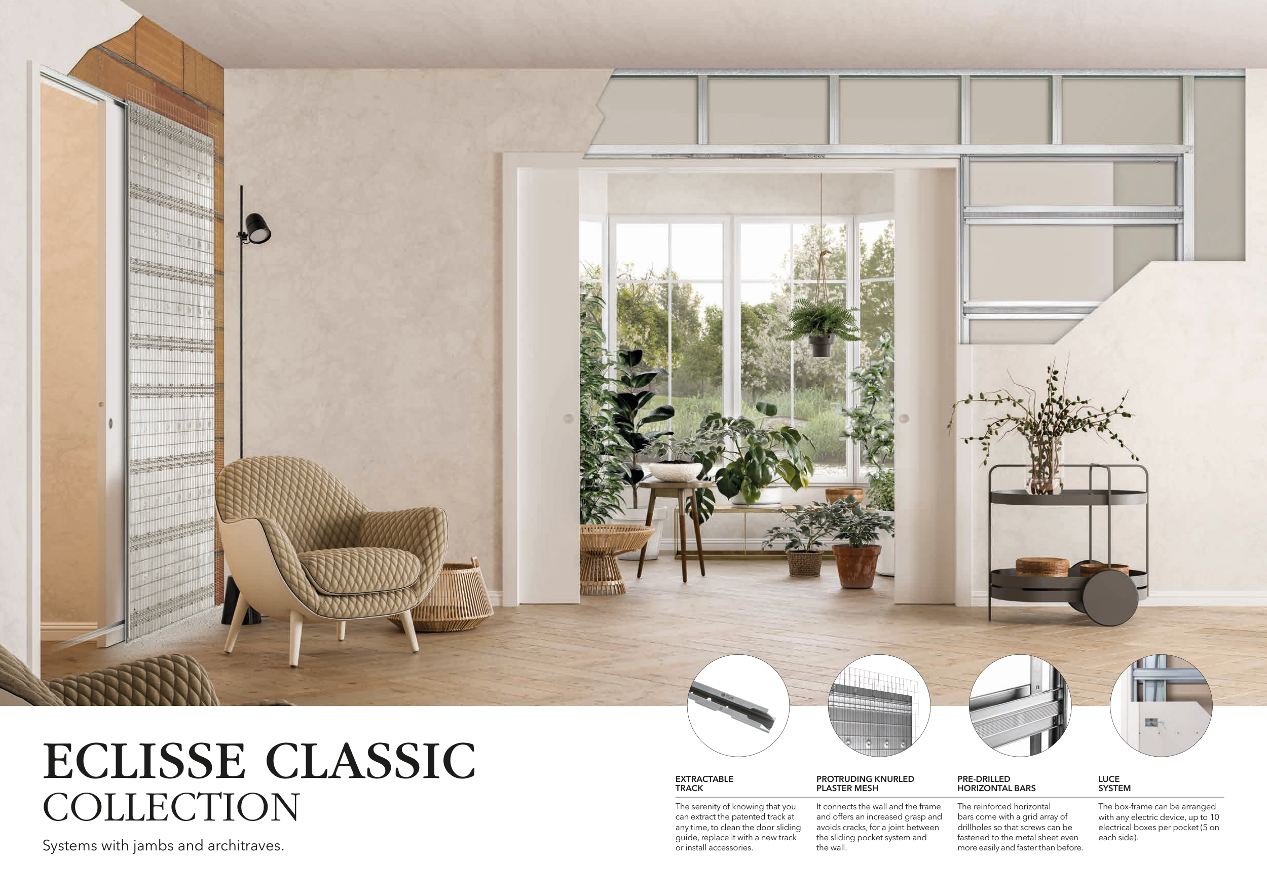 Systems with jambs and architraves.