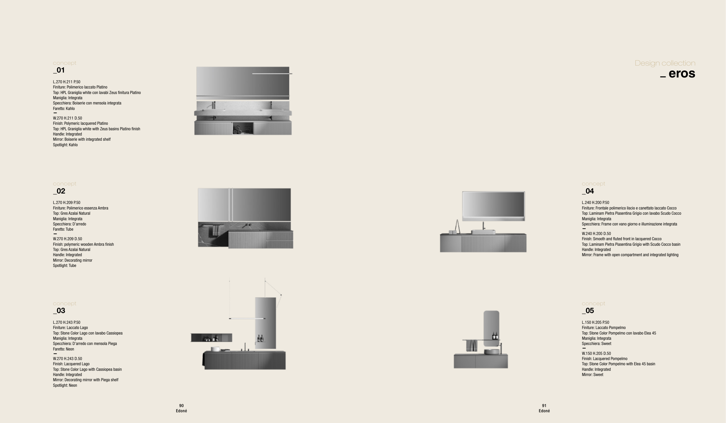 Top: HPL Graniglia white with Zeus basins Platino finish