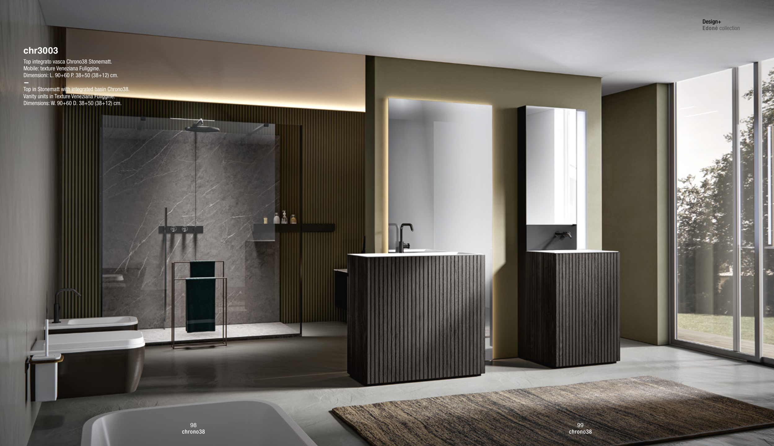 Vanity units in Texture Veneziana Fuliggine.