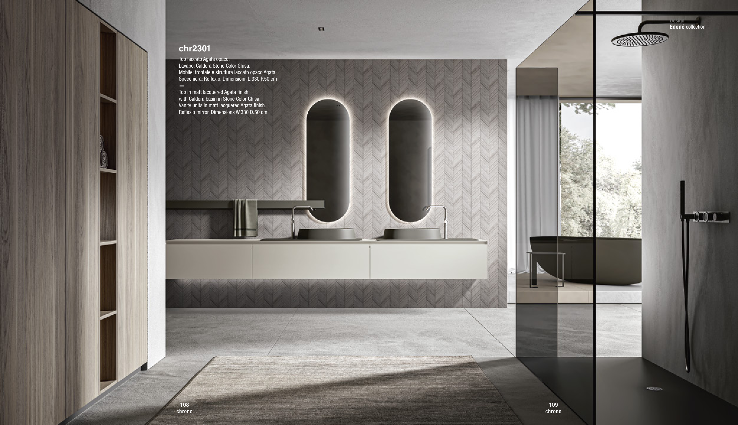 Vanity units in matt lacquered Agata finish.