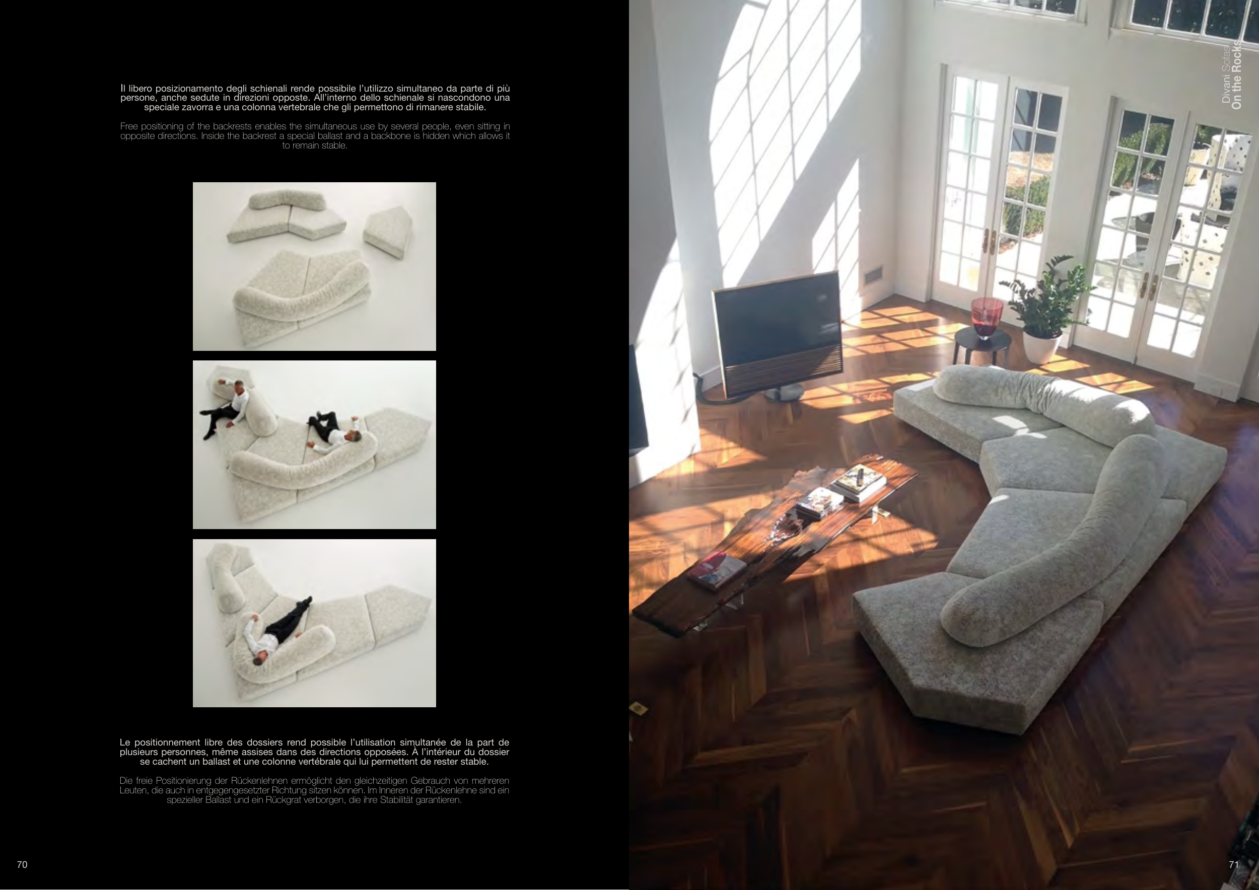 Il libero posizionamento degli schienali rende possibile l’utilizzo simultaneo da parte di più