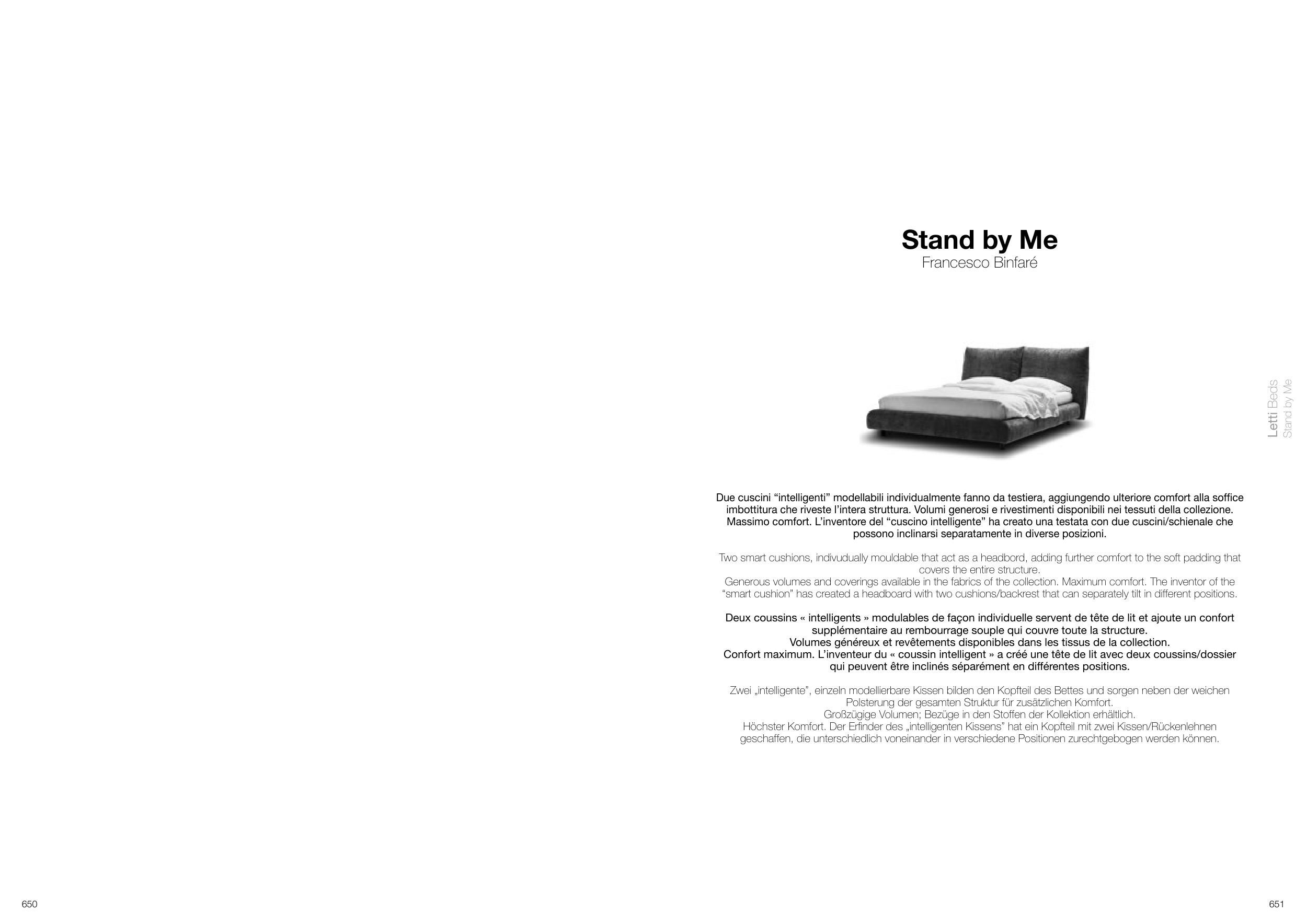 Due cuscini “intelligenti” modellabili individualmente fanno da testiera, aggiungendo ulteriore comfort alla soffice