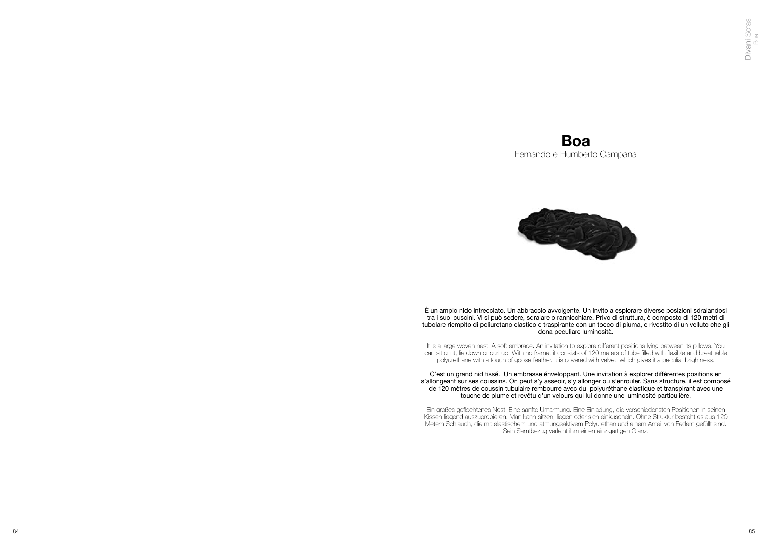 tra i suoi cuscini. Vi si può sedere, sdraiare o rannicchiare. Privo di struttura, è composto di 120 metri di