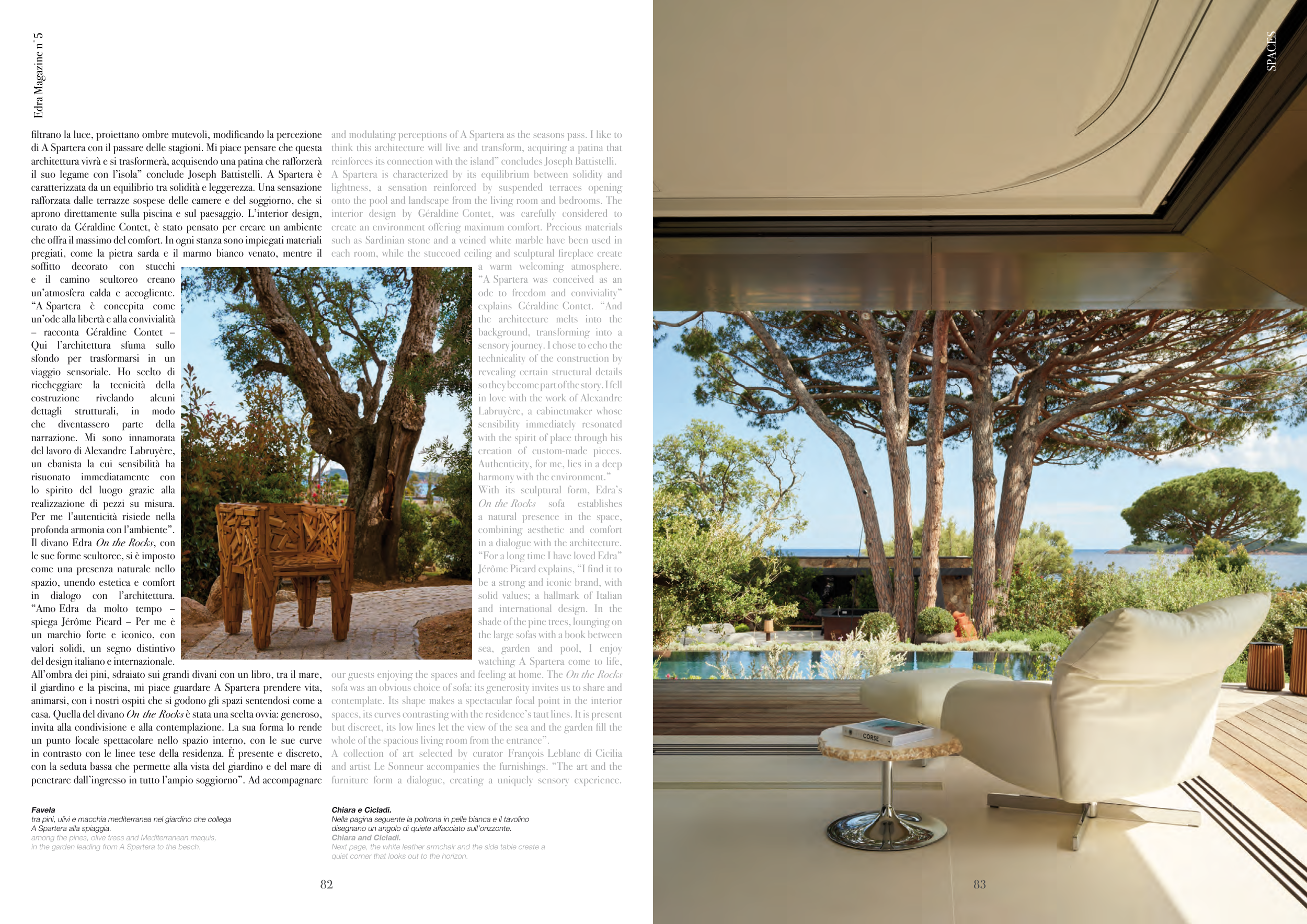 aprono direttamente sulla piscina e sul paesaggio. L’interior design,