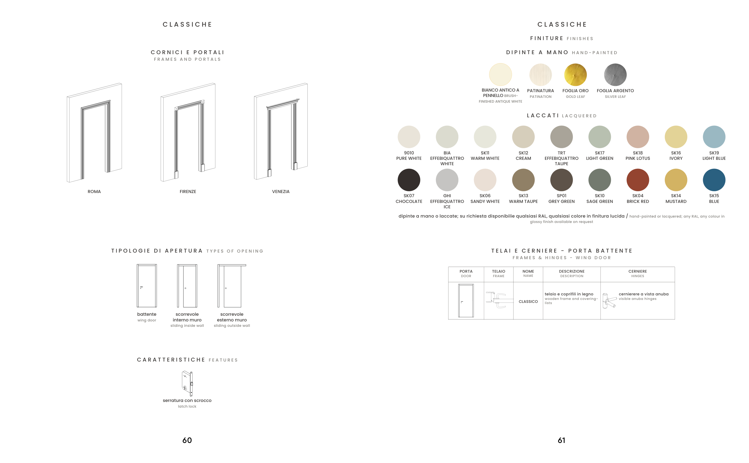 dipinte a mano o laccate; su richiesta disponibilie qualsiasi RAL, qualsiasi colore in finitura lucida / hand-painted or lacquered; any RAL, any colour in