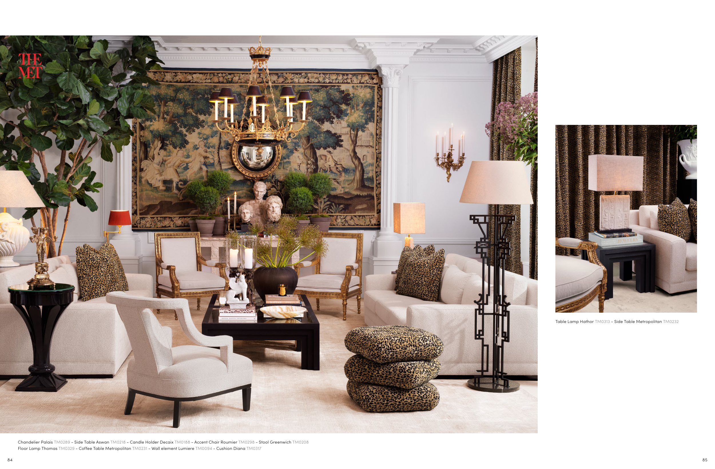 Chandelier Palais TM0289 - Side Table Aswan TM0218 - Candle Holder Decaix TM0188 - Accent Chair Roumier TM0298 - Stool Greenwich TM0208