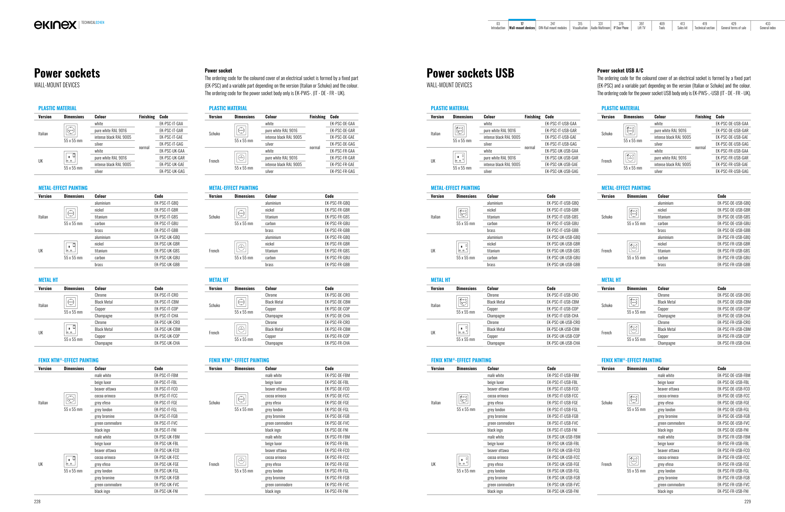 The ordering code for the power socket USB body only is EK-PWS-..-USB (IT - DE - FR - UK).