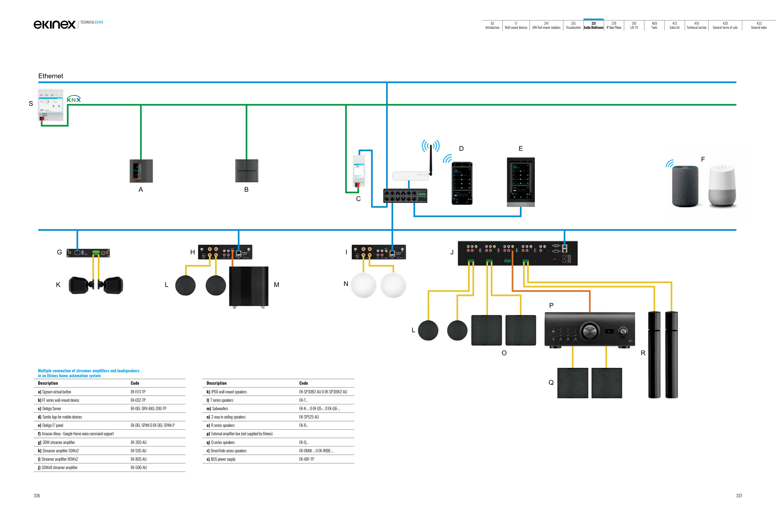 p) External amplifier box (not supplied by Ekinex)