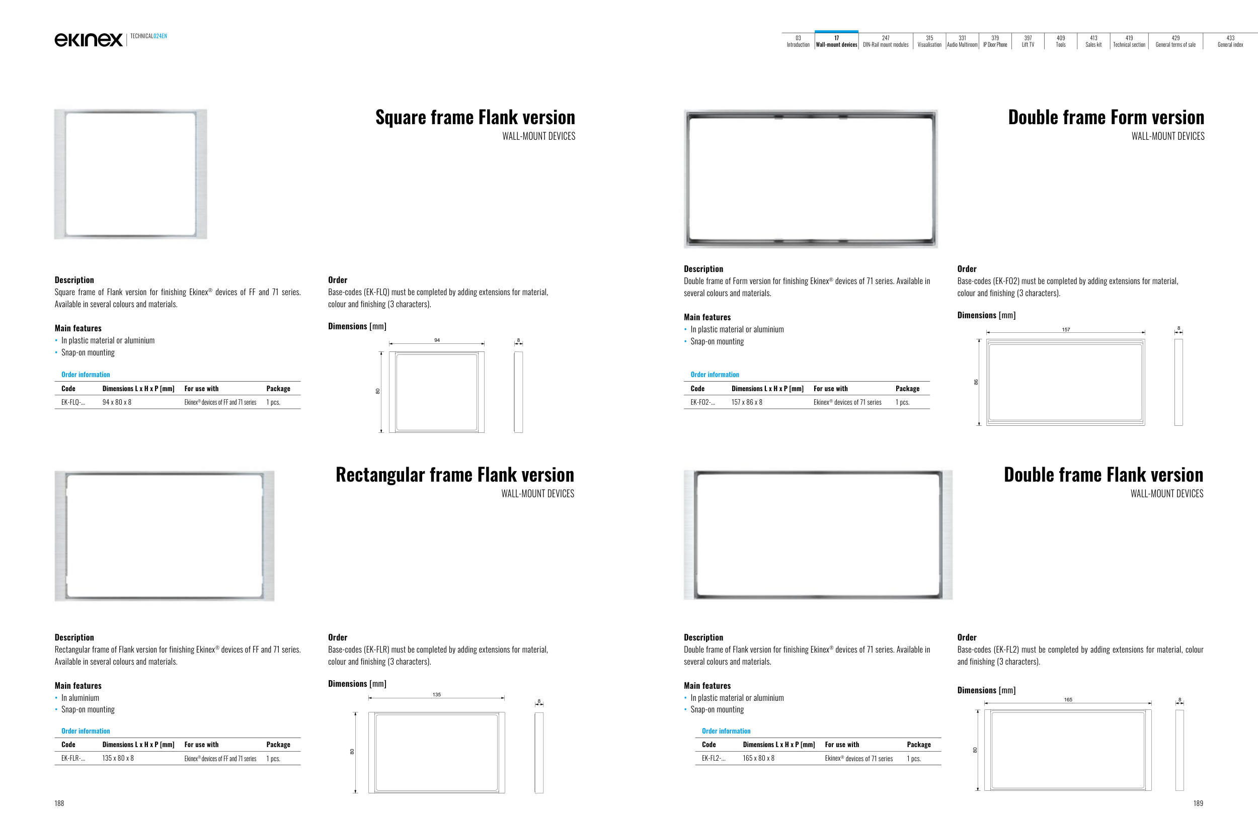 Double frame of Flank version for finishing Ekinex® devices of 71 series. Available in