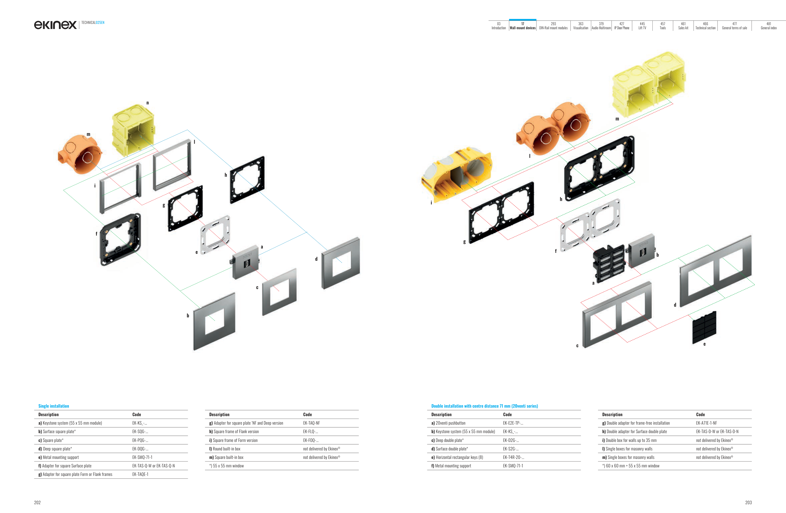 m) Single boxes for masonry walls