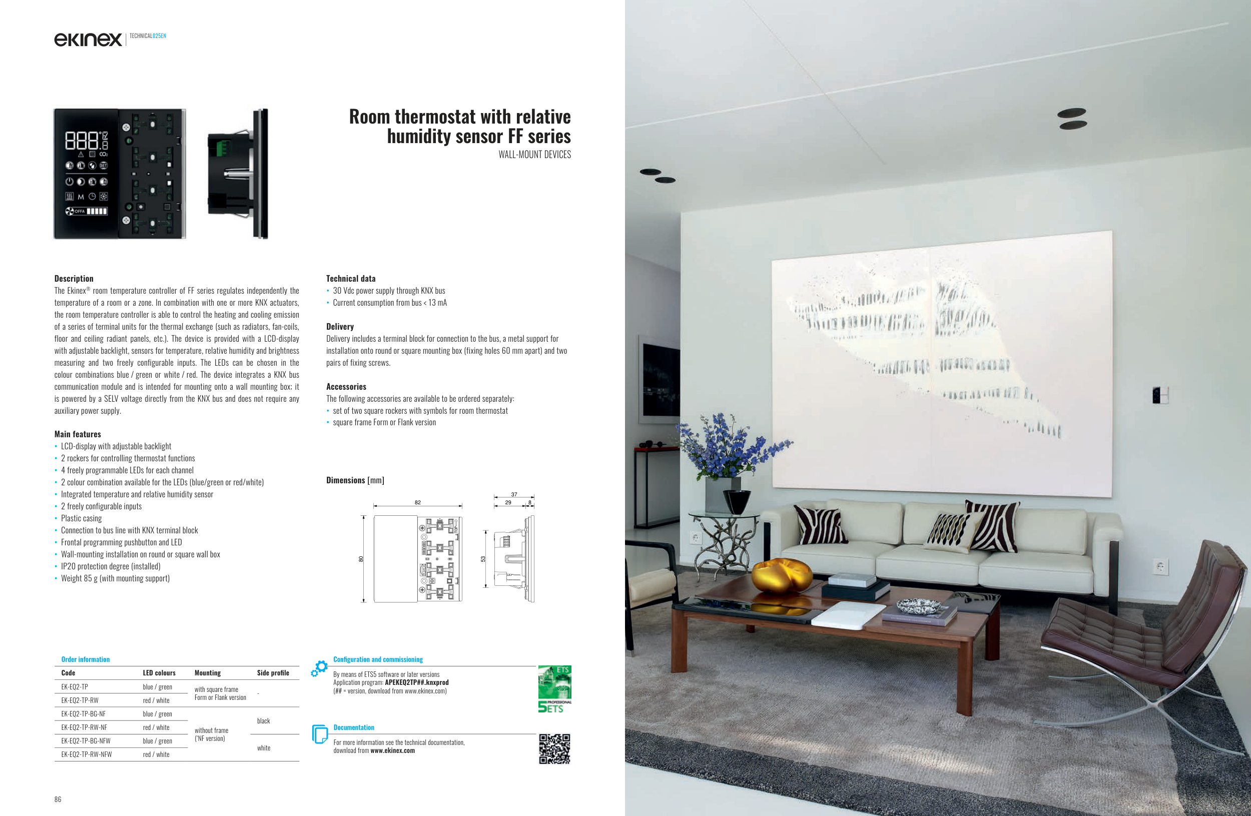 temperature of a room or a zone. In combination with one or more KNX actuators,
