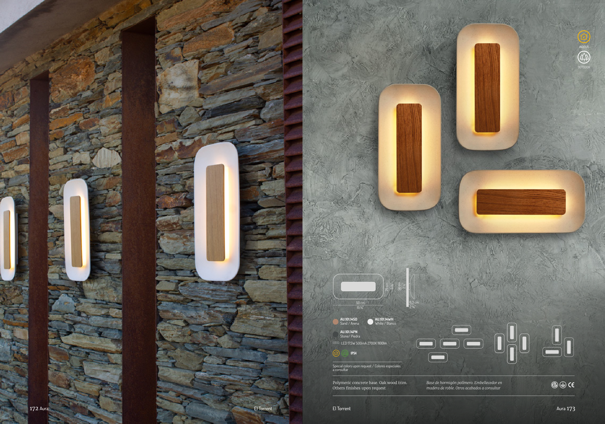 Polymeric concrete base. Oak wood trim.