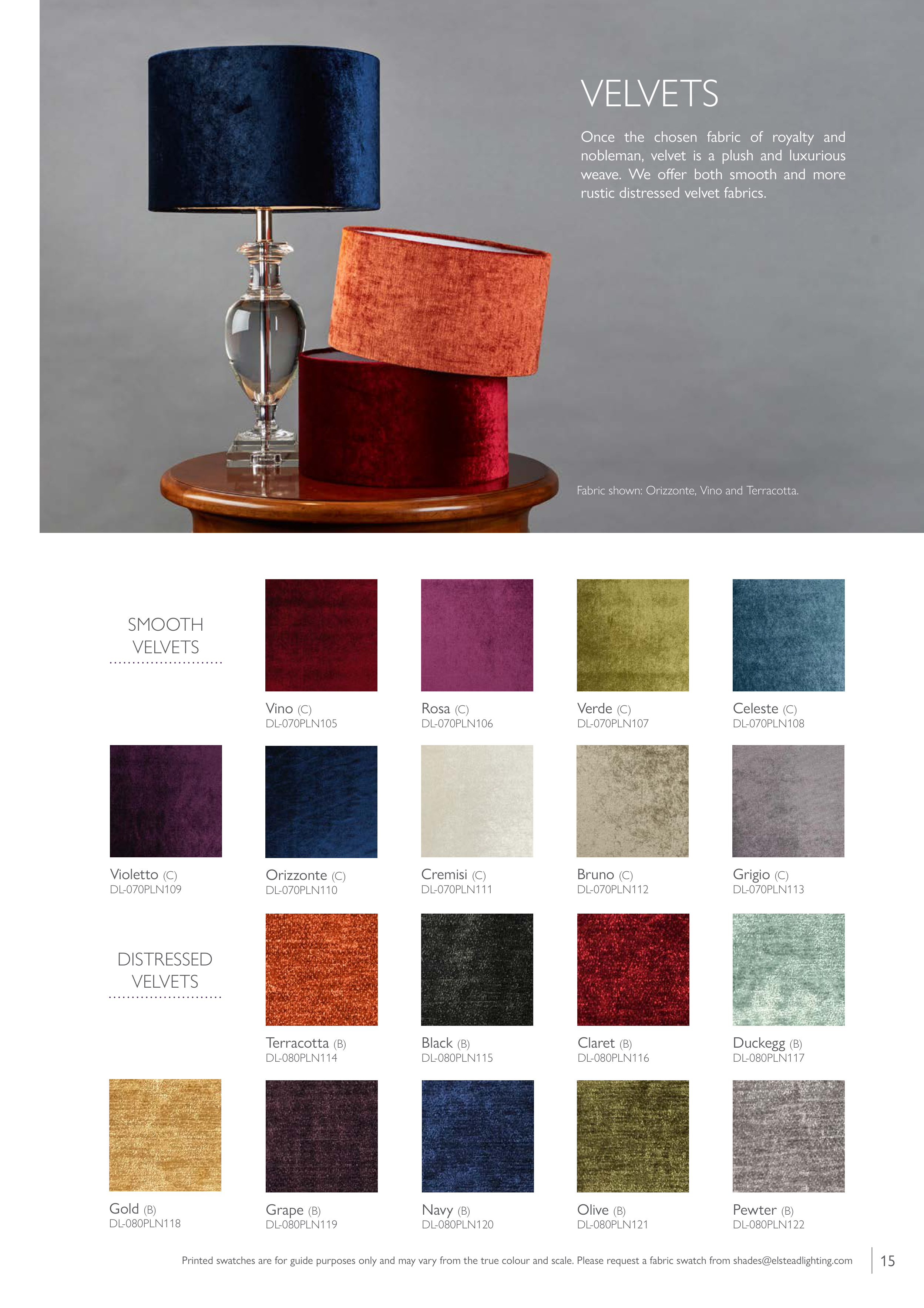 Printed swatches are for guide purposes only and may vary from the true colour and scale. Please request a fabric swatch from shades@elsteadlighting.com