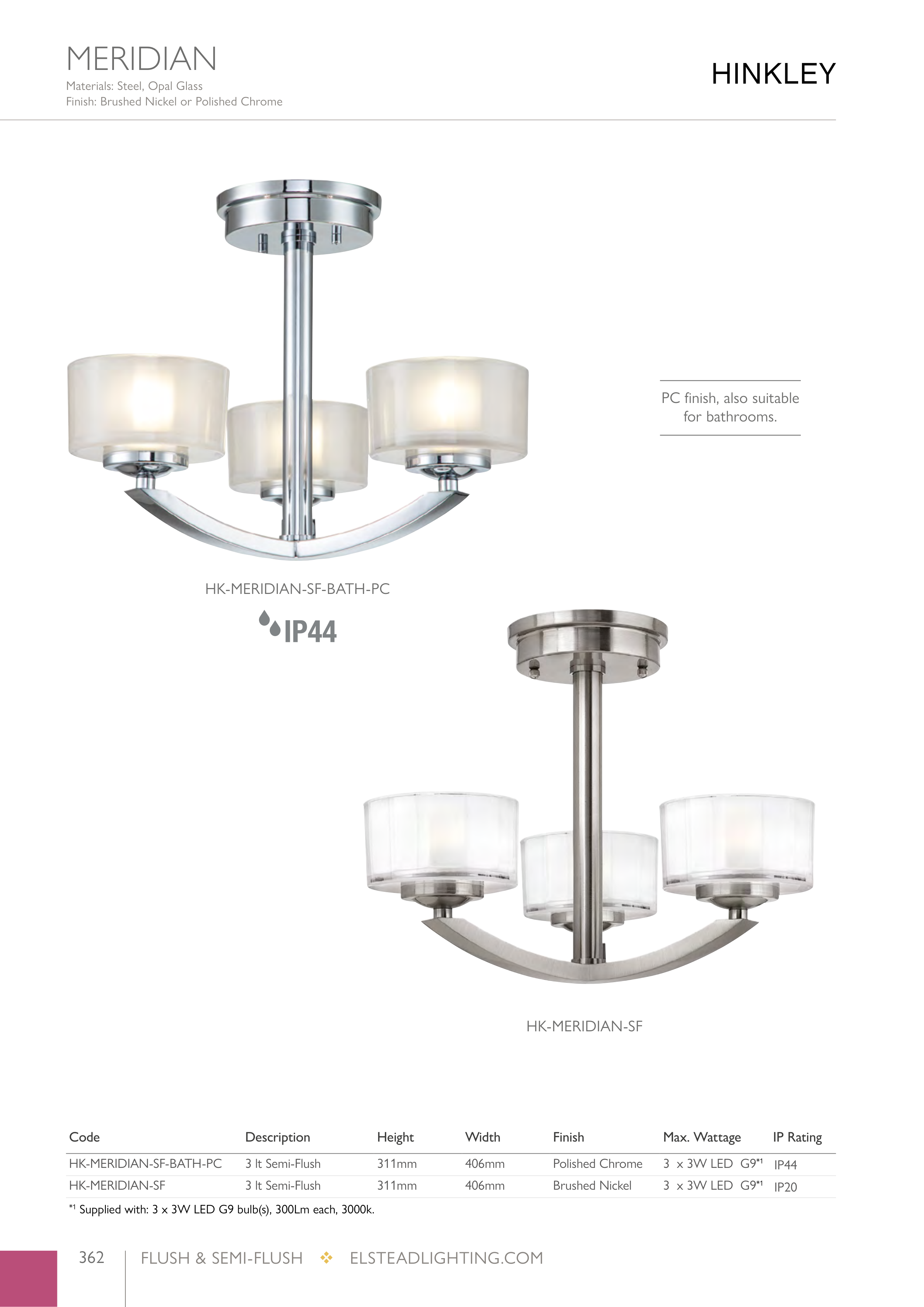 *1 Supplied with: 3 x 3W LED G9 bulb(s), 300Lm each, 3000k.