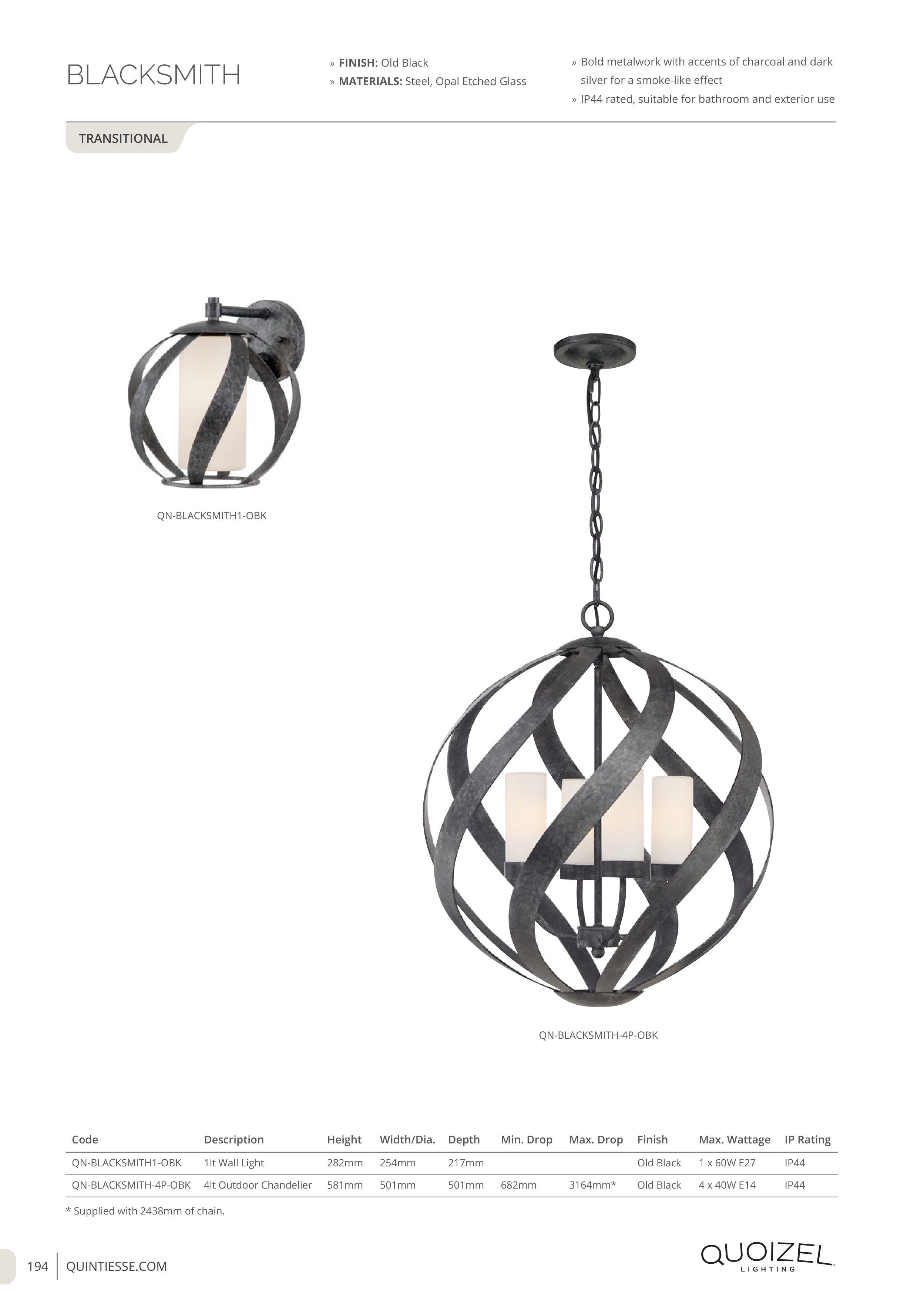 * Supplied with 2438mm of chain.