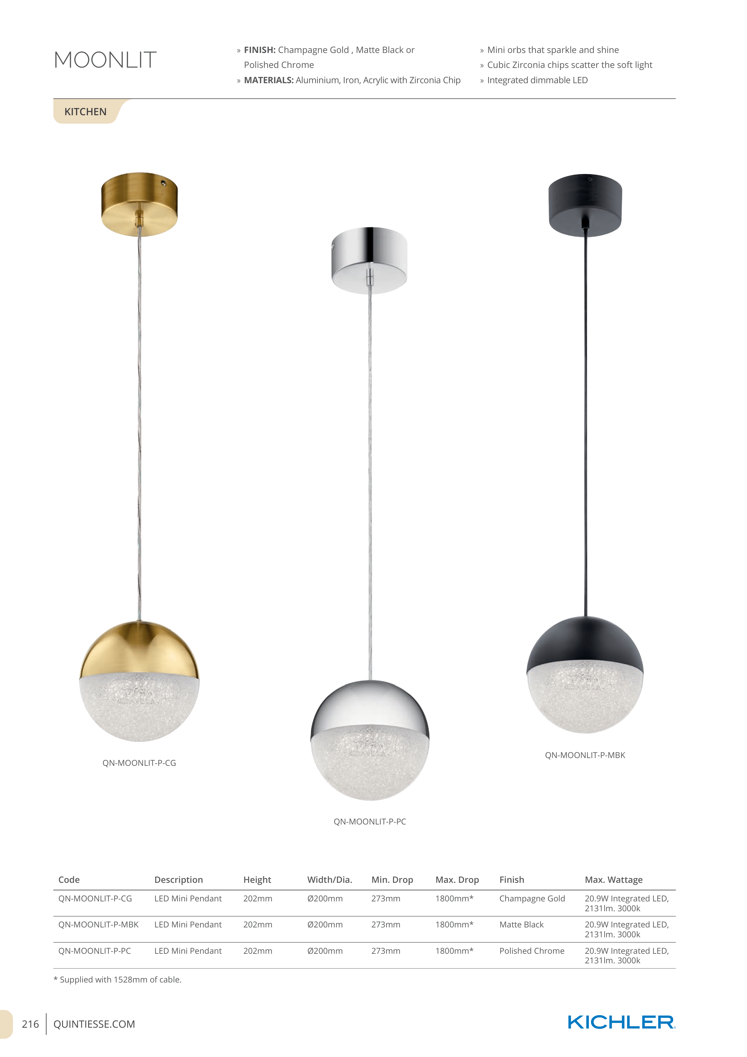 * Supplied with 1528mm of cable.