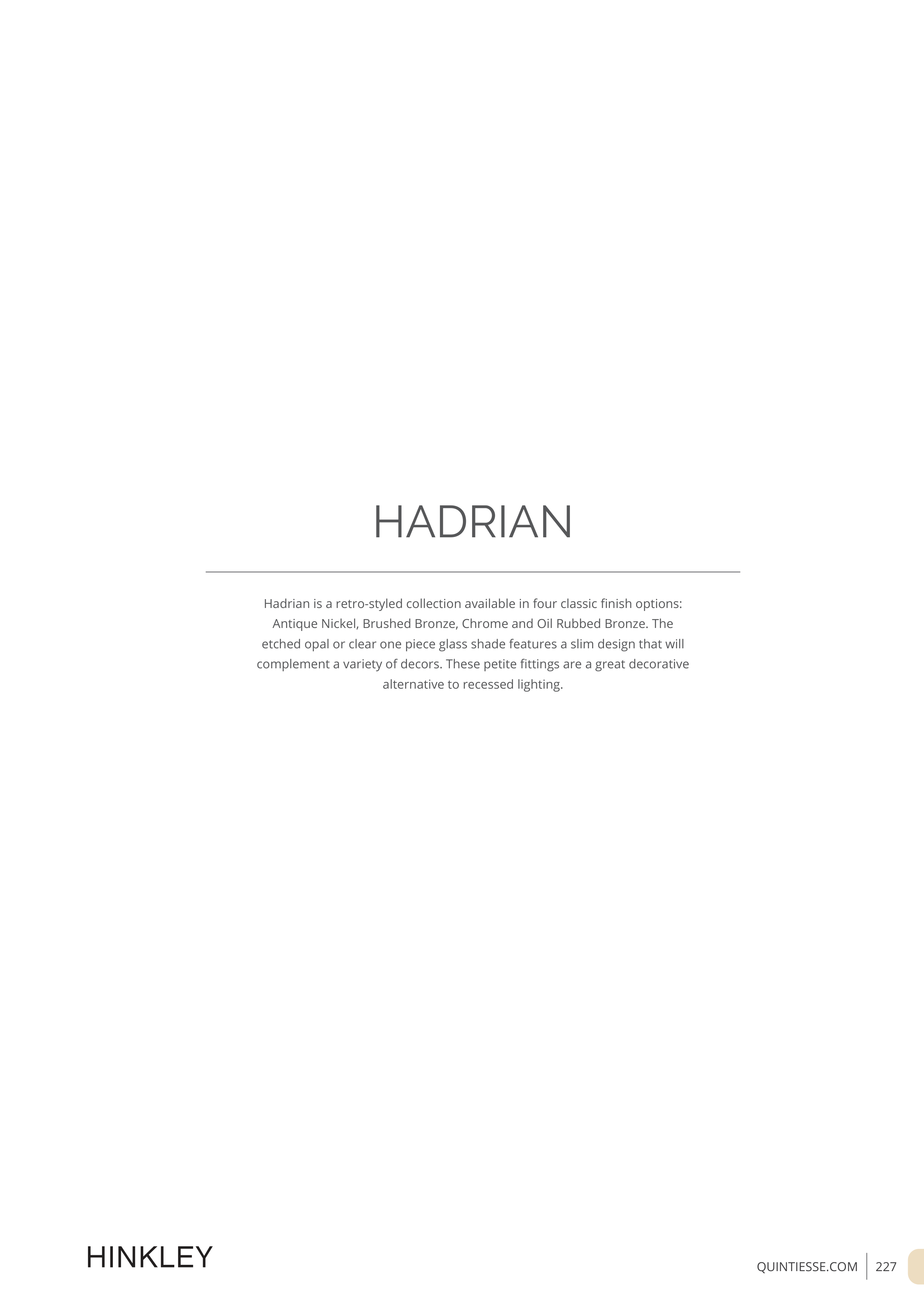 Hadrian is a retro-styled collection available in four classic finish options: