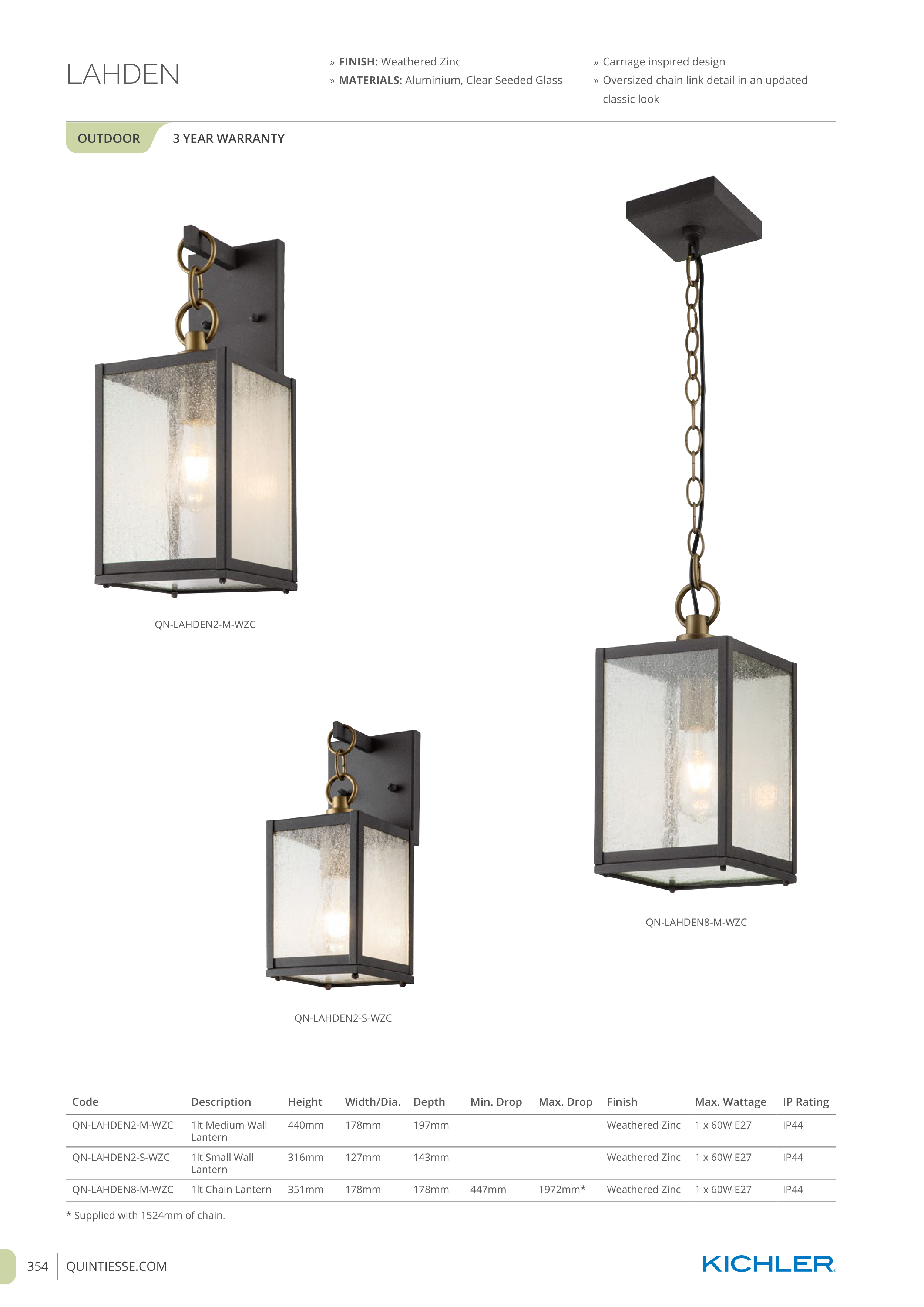* Supplied with 1524mm of chain.