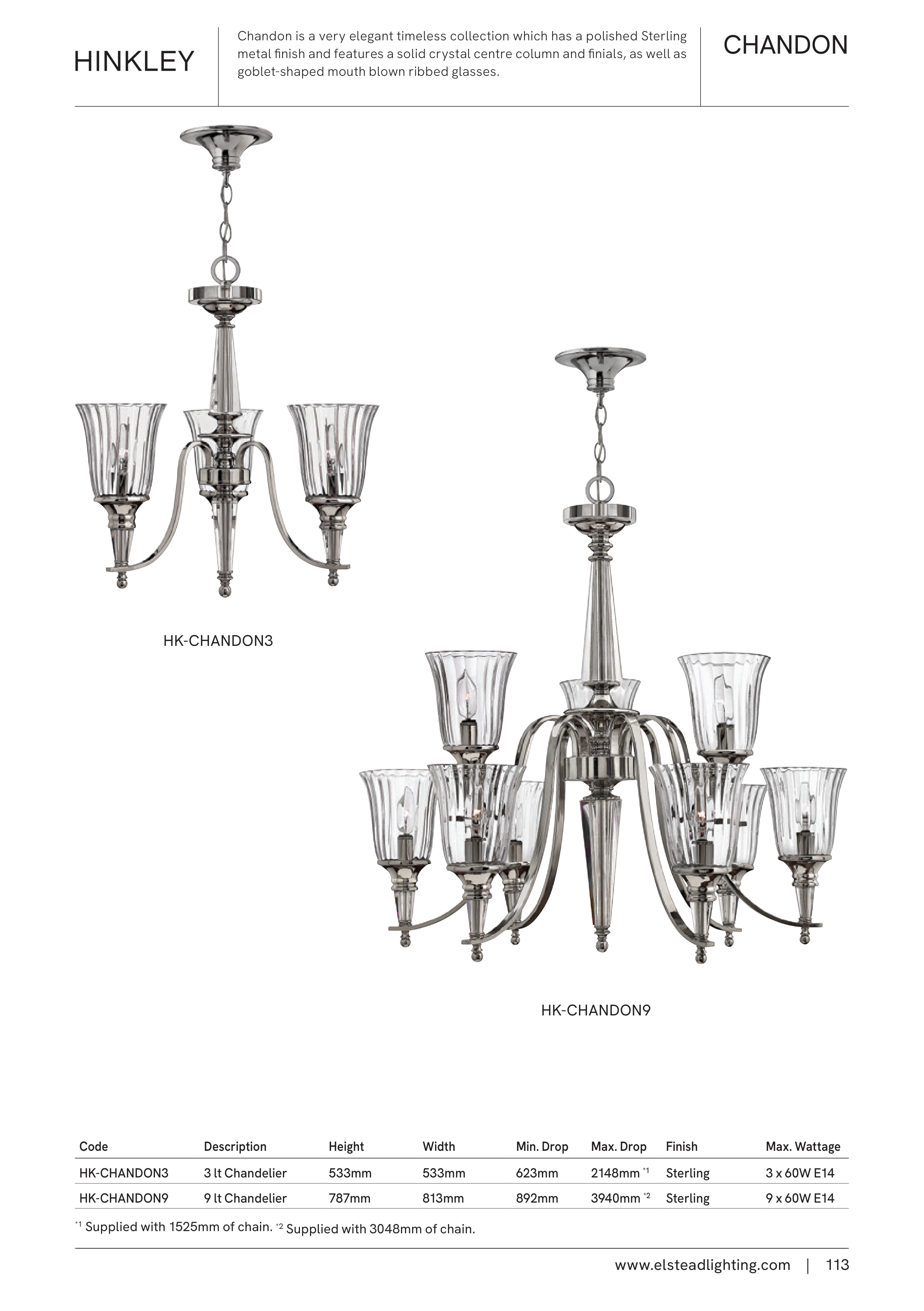 *1 Supplied with 1525mm of chain. *2 Supplied with 3048mm of chain.
