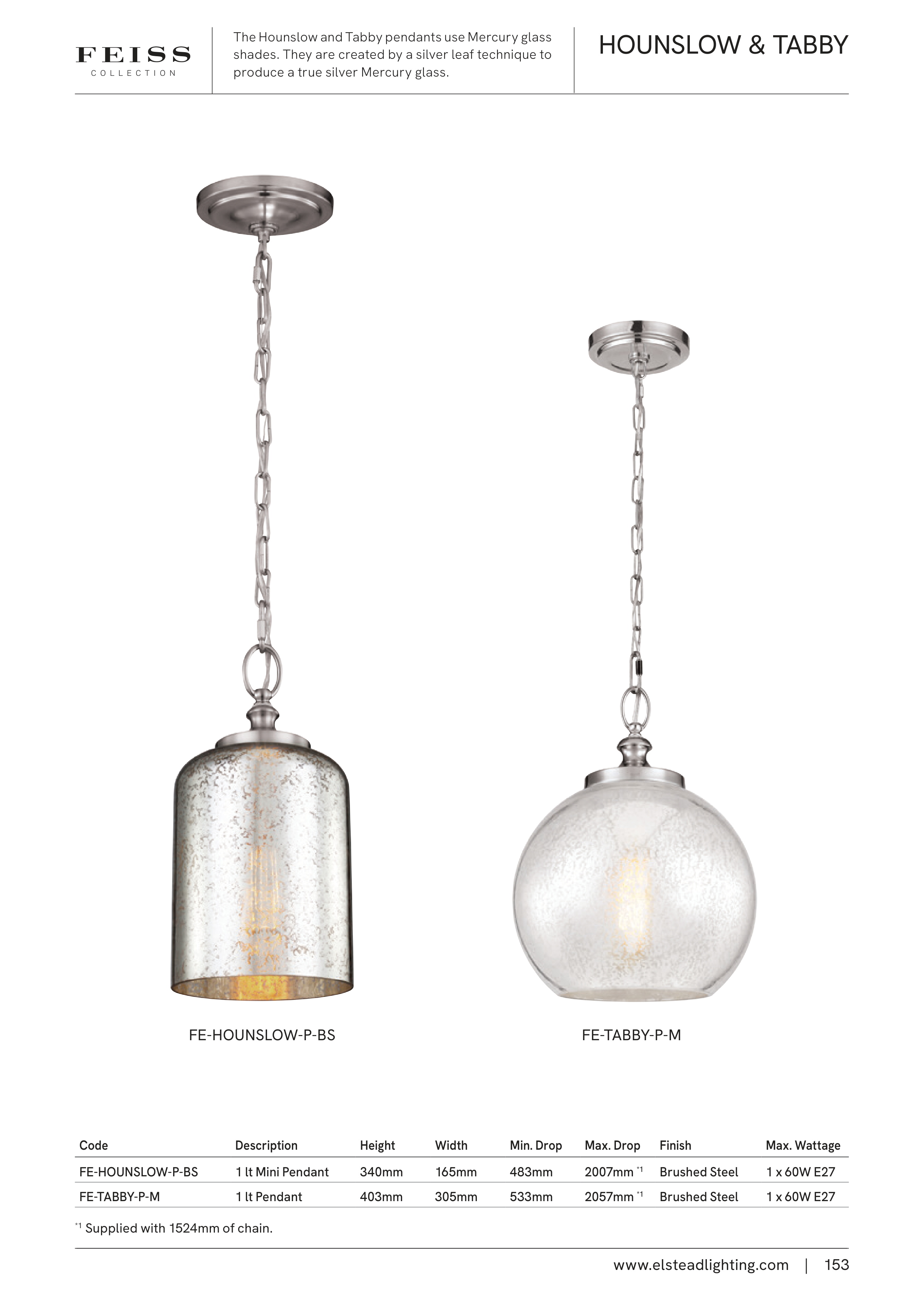 The Hounslow and Tabby pendants use Mercury glass