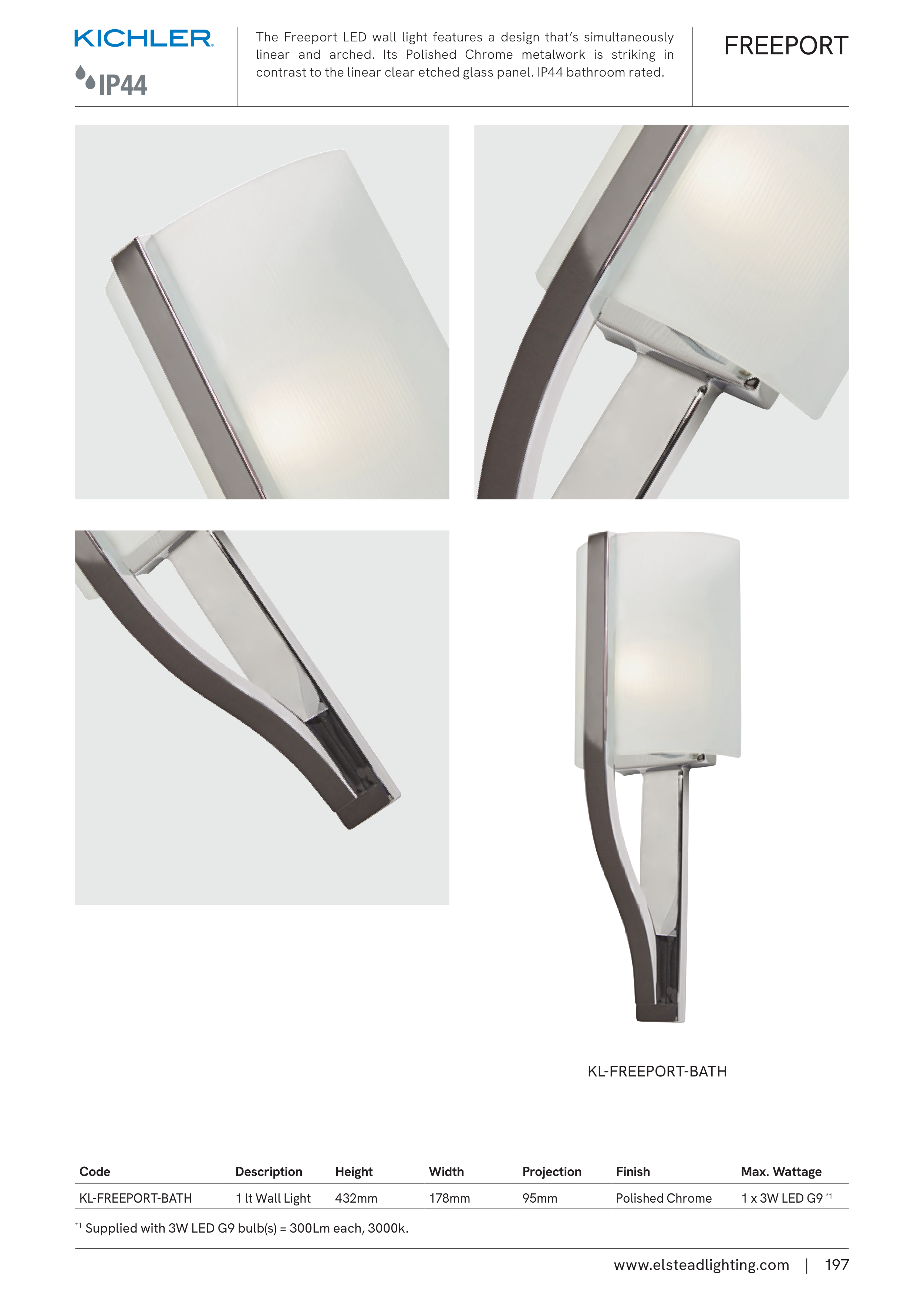 contrast to the linear clear etched glass panel. IP44 bathroom rated.