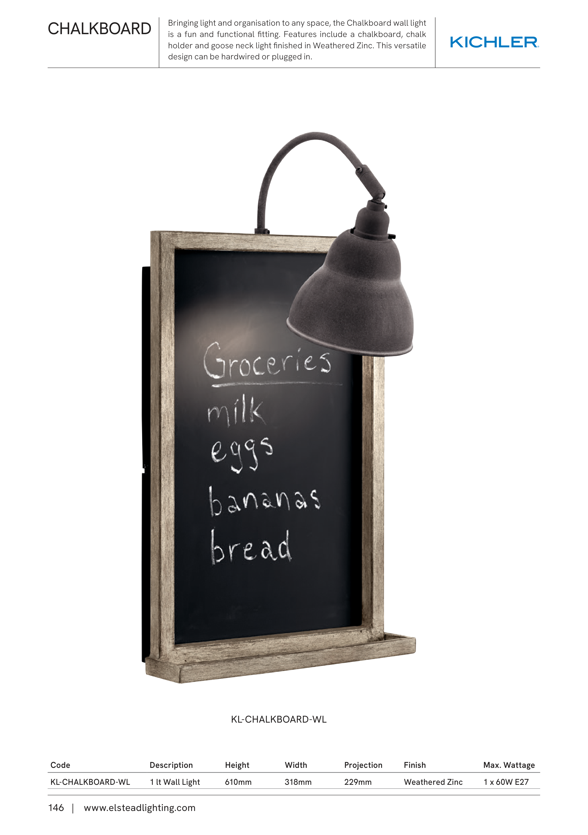 is a fun and functional fitting. Features include a chalkboard, chalk