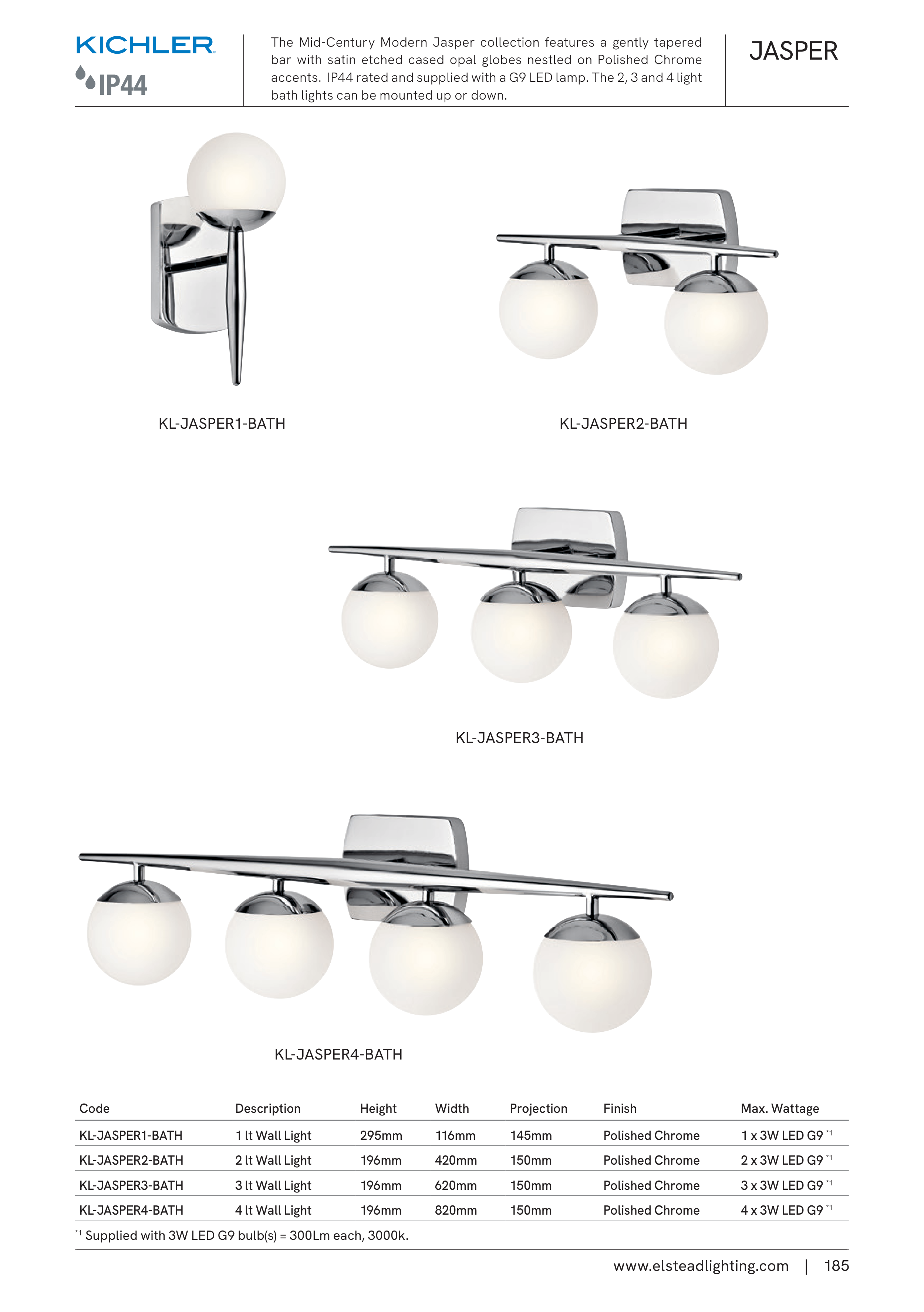 accents. IP44 rated and supplied with a G9 LED lamp. The 2, 3 and 4 light