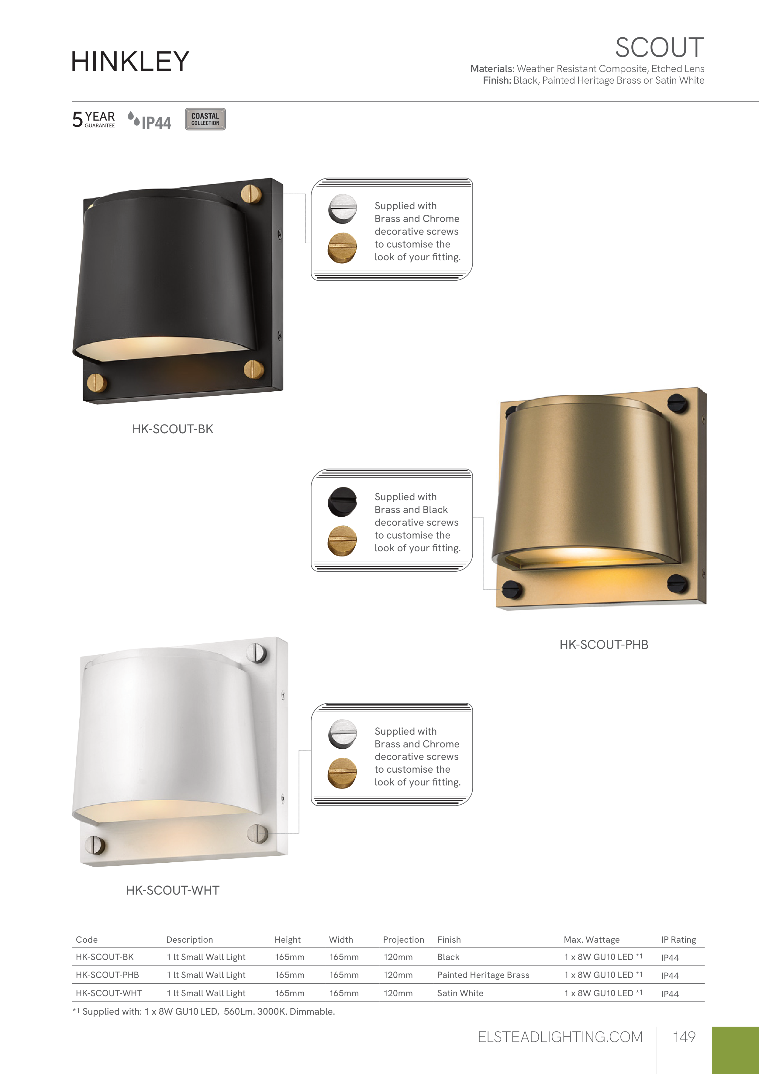 *1 Supplied with: 1 x 8W GU10 LED, 560Lm. 3000K. Dimmable.
