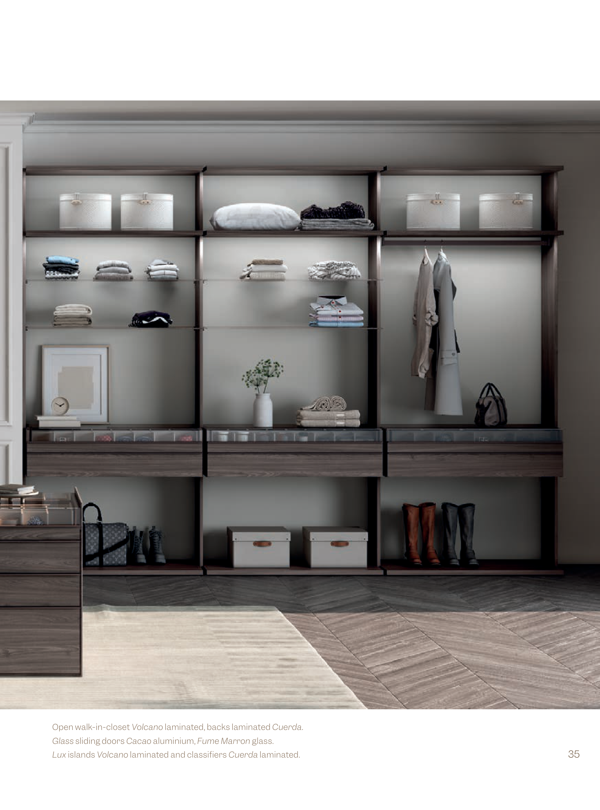Open walk-in-closet Volcano laminated, backs laminated Cuerda.