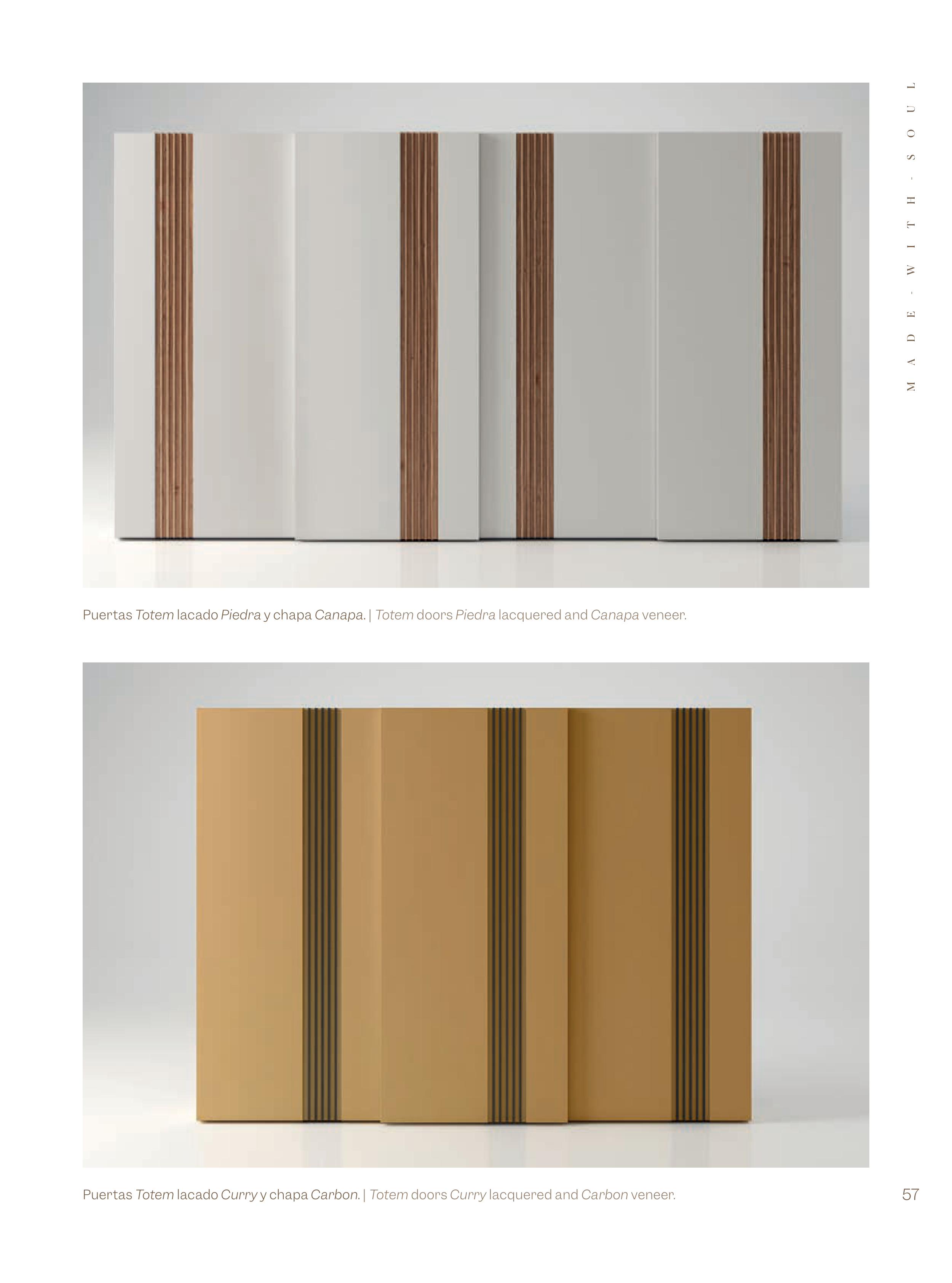 Puertas Totem lacado Piedra y chapa Canapa. | Totem doors Piedra lacquered and Canapa veneer.