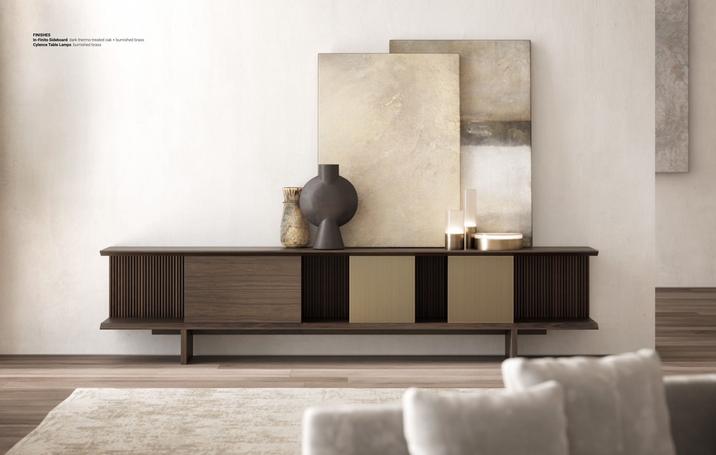 In-Finito Sideboard: dark thermo-treated oak + burnished brass