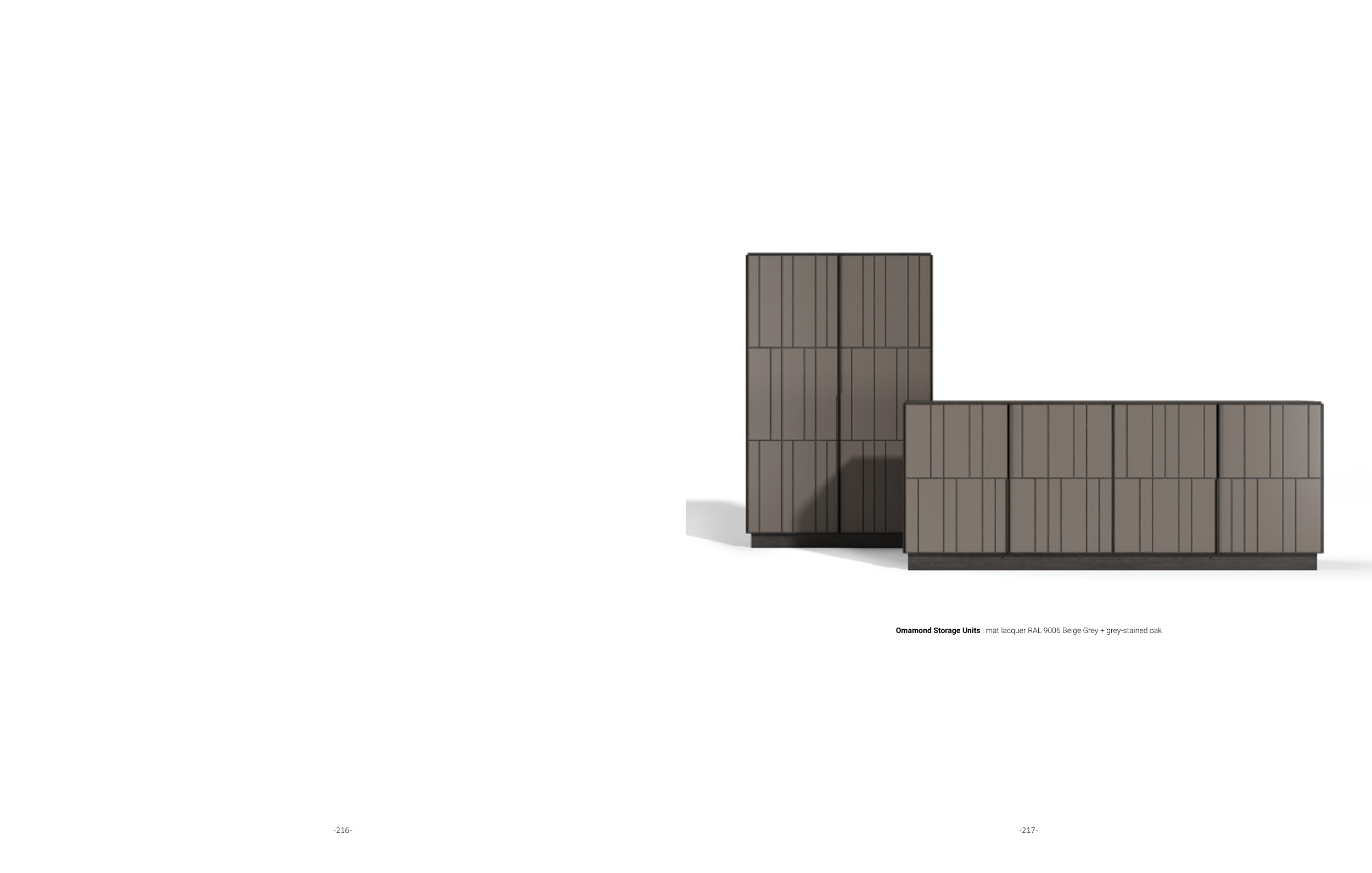 Omamond Storage Units | mat lacquer RAL 9006 Beige Grey + grey-stained oak