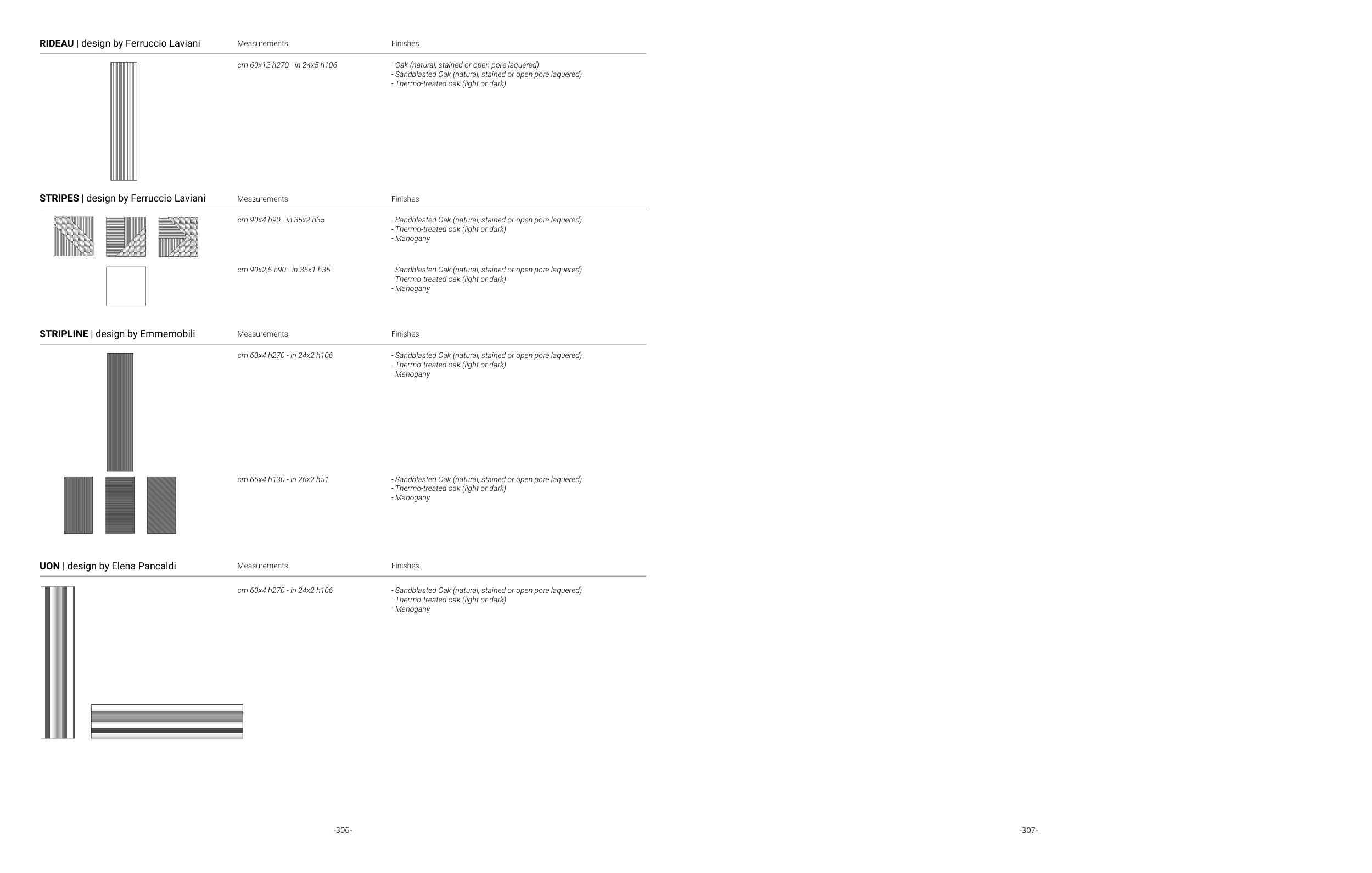- Oak (natural, stained or open pore laquered)