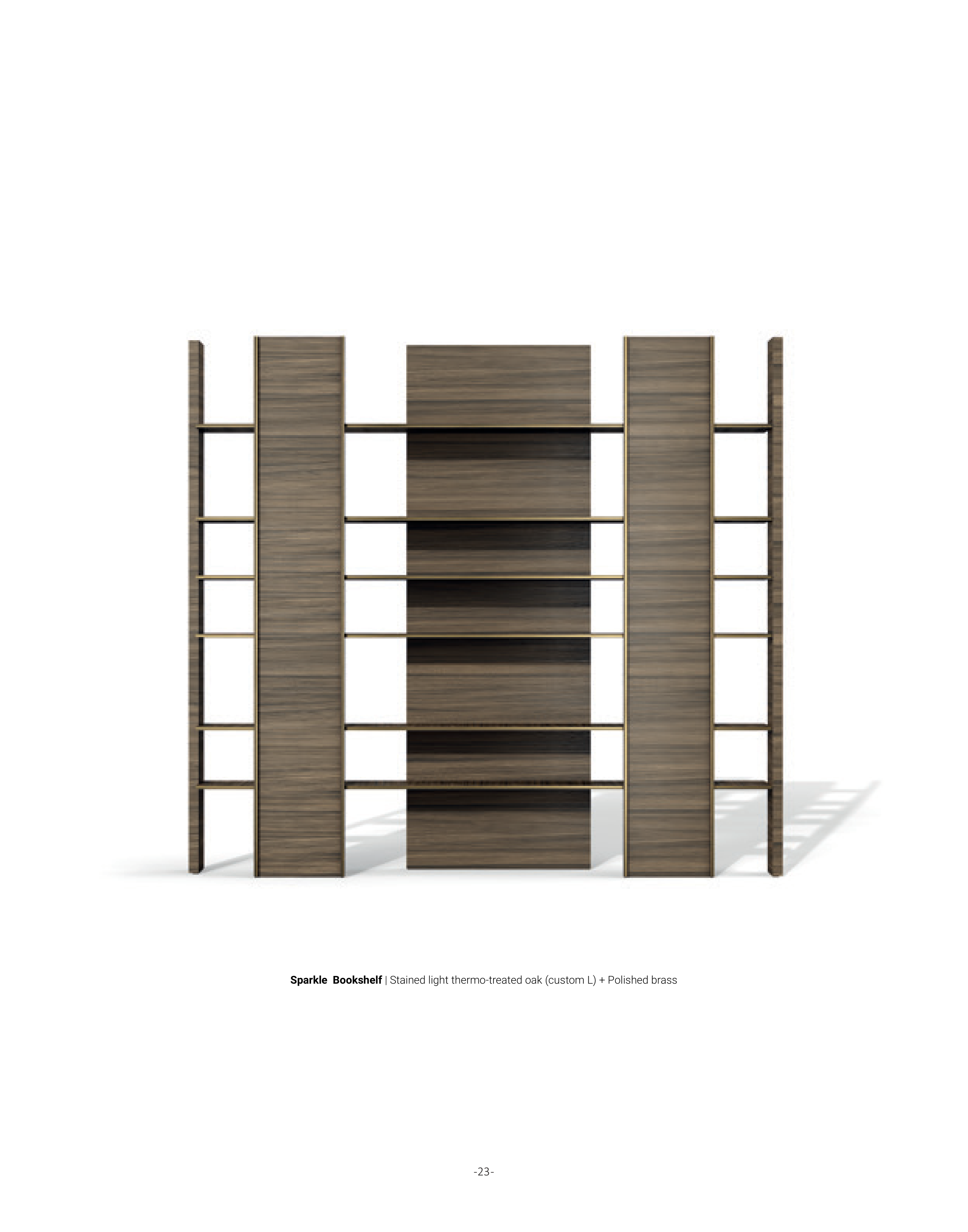 Sparkle Bookshelf | Stained light thermo-treated oak (custom L) + Polished brass