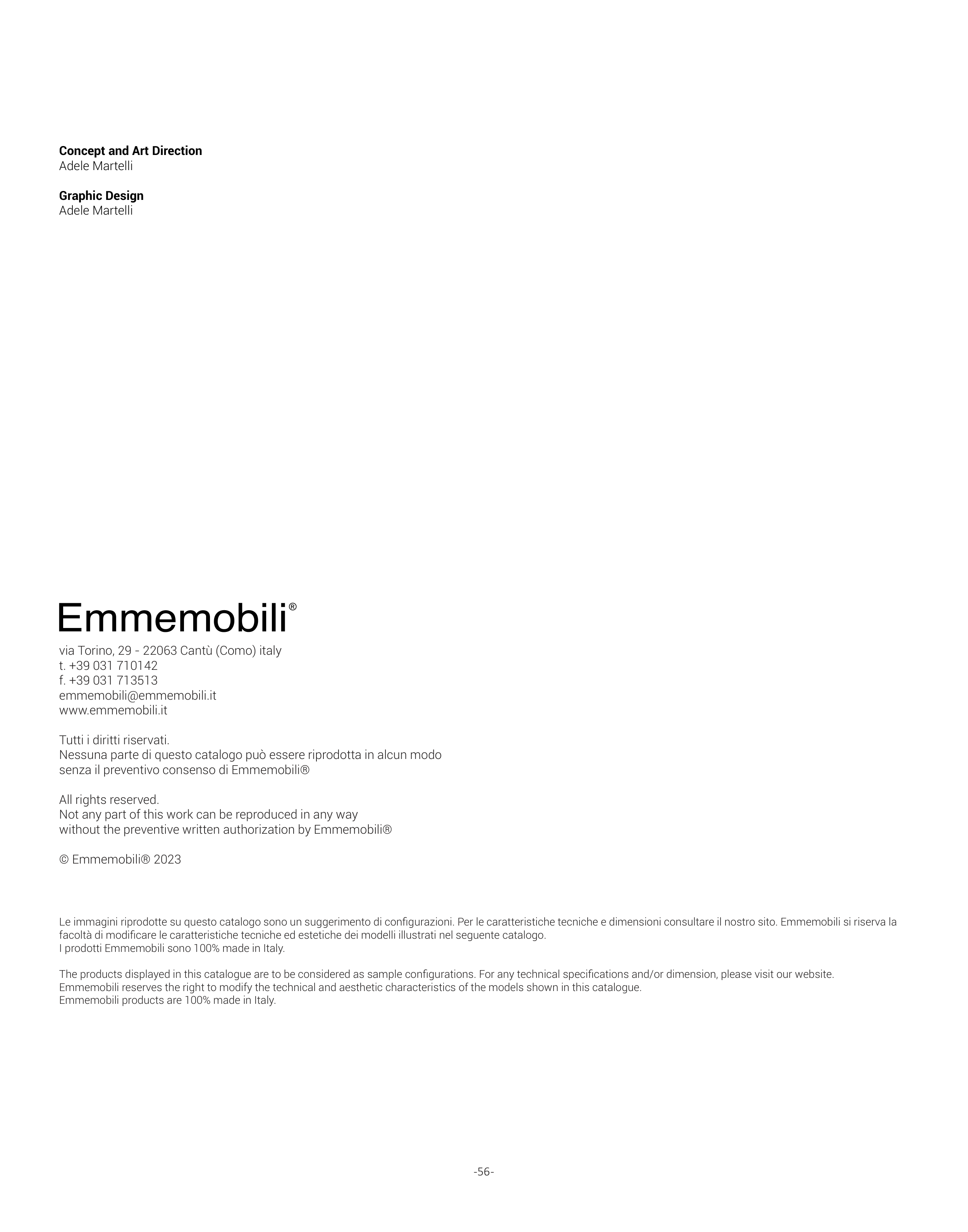 Emmemobili reserves the right to modify the technical and aesthetic characteristics of the models shown in this catalogue.