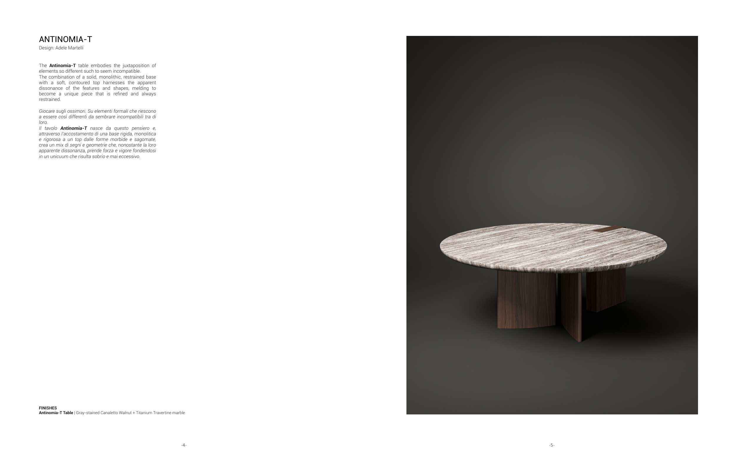 Antinomia-T Table | Gray-stained Canaletto Walnut + Titanium Travertine marble