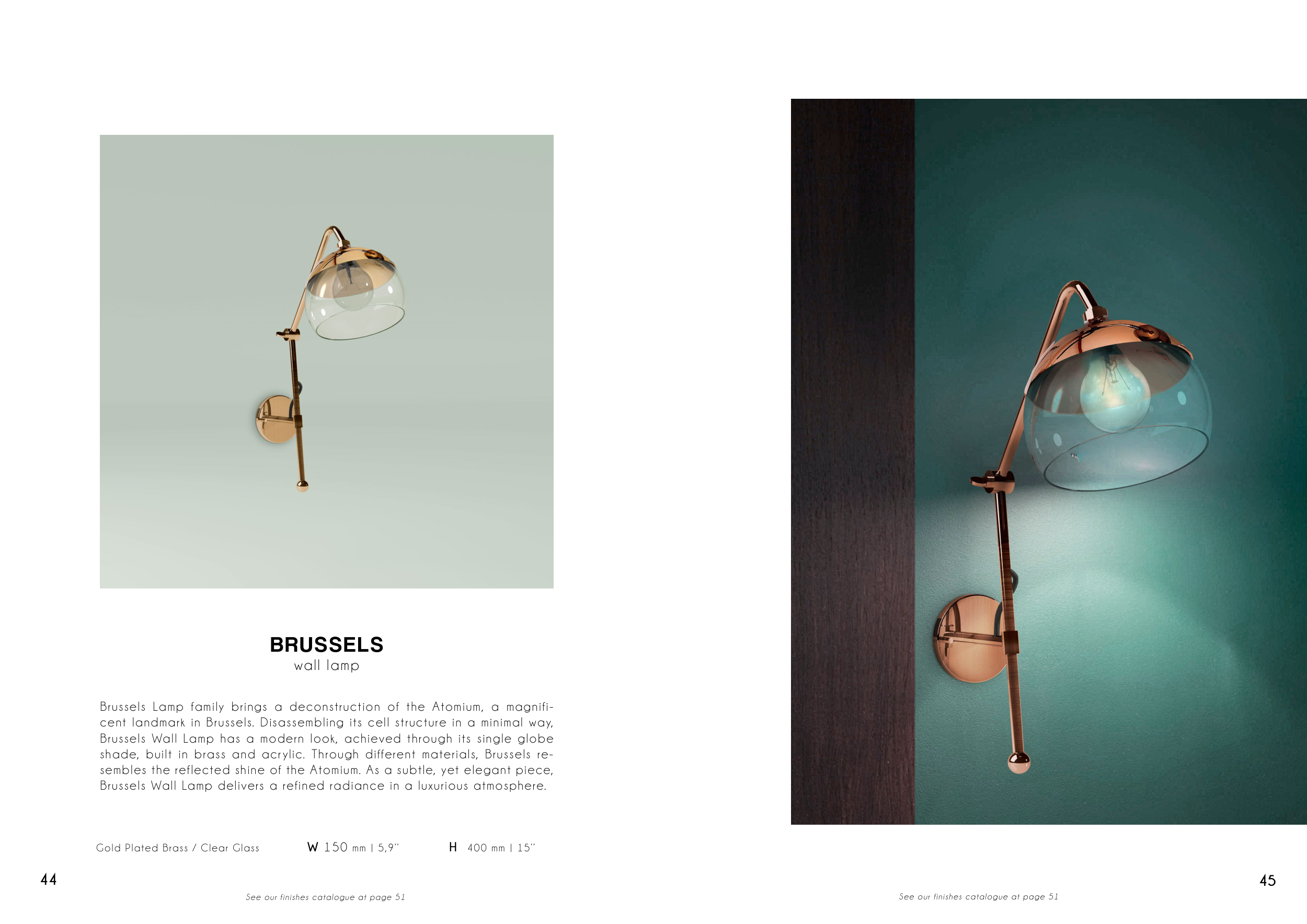 shade, built in brass and acr ylic. Through different materials, Brussels re-