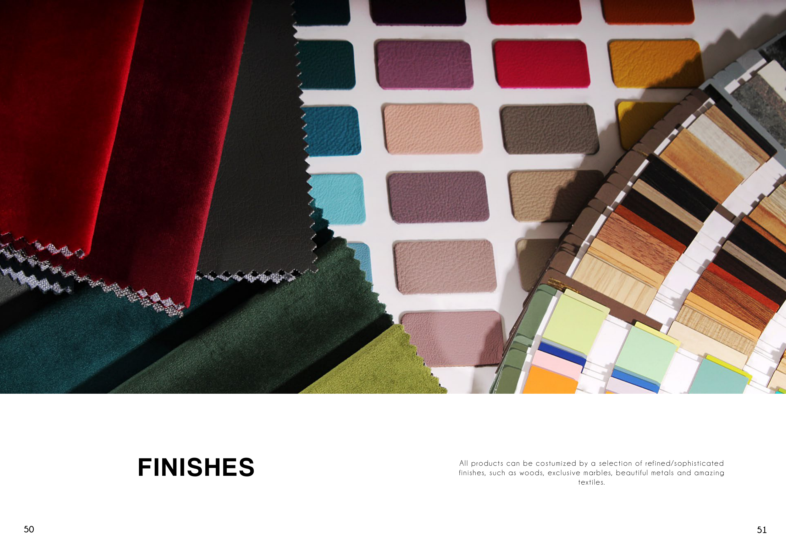 finishes, such as woods, exclusive marbles, beautiful metals and amazing