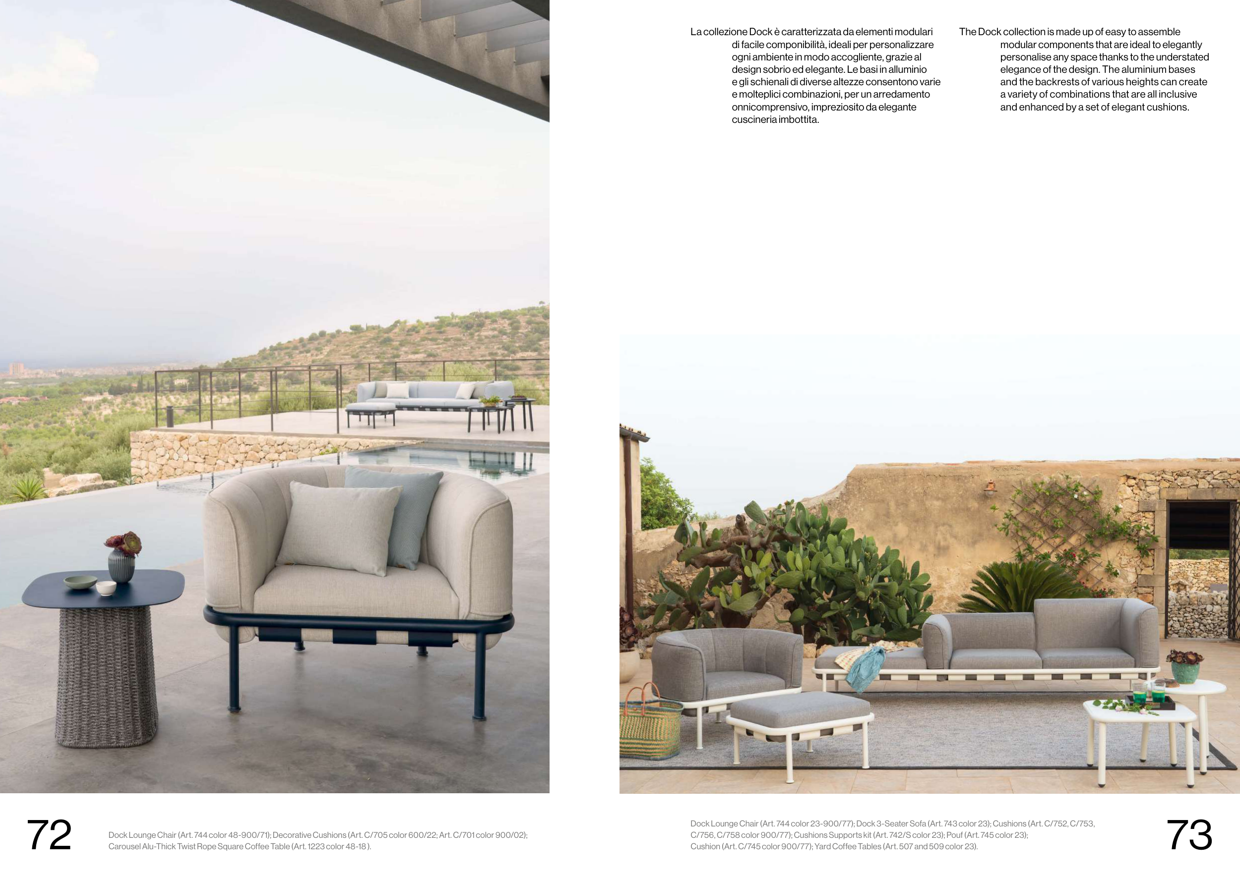 Dock Lounge Chair (Art. 744 color 23-900/77); Dock 3-Seater Sofa (Art. 743 color 23); Cushions (Art. C/752, C/753,