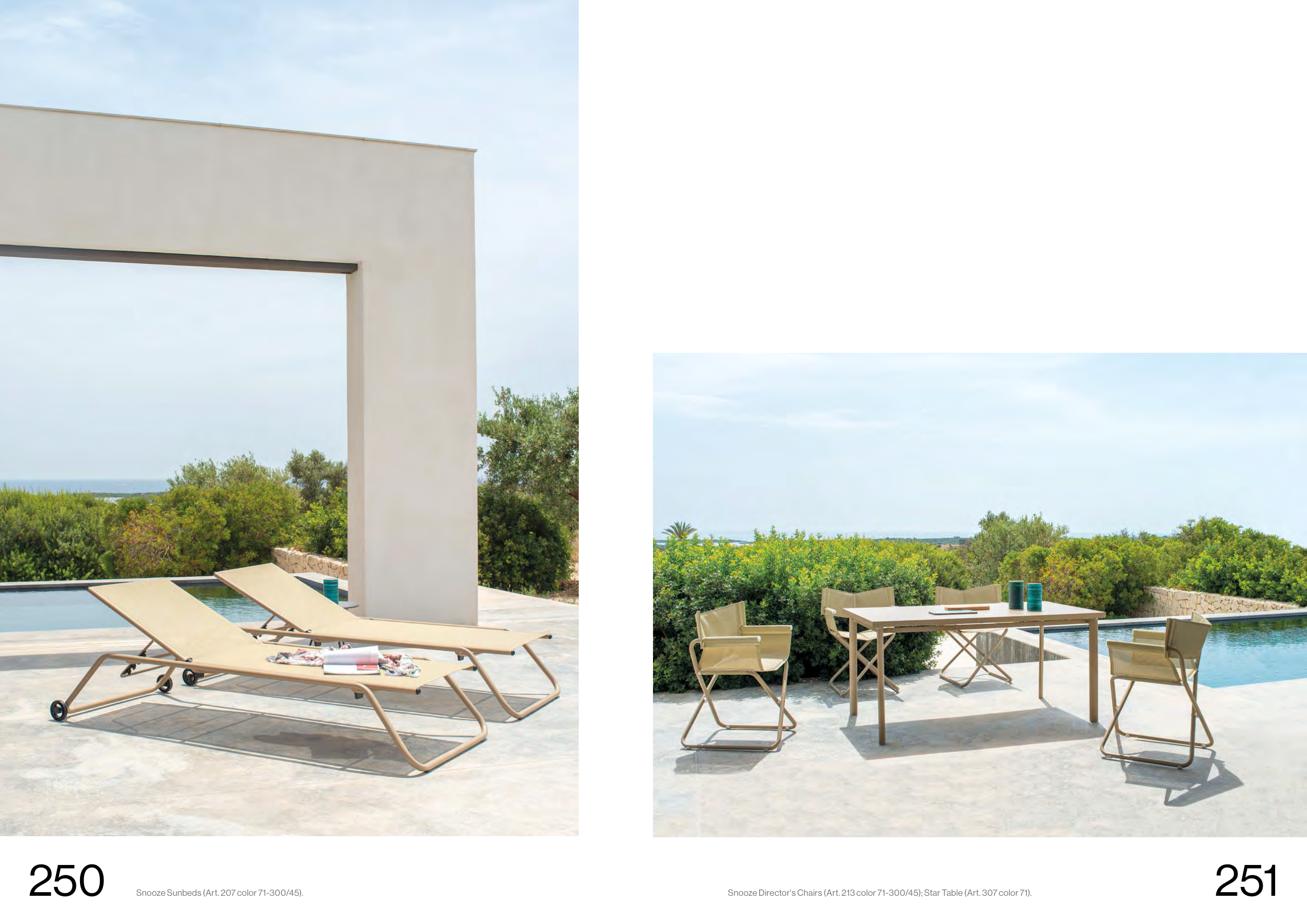 Snooze Director's Chairs (Art. 213 color 71-300/45); Star Table (Art. 307 color 71).
