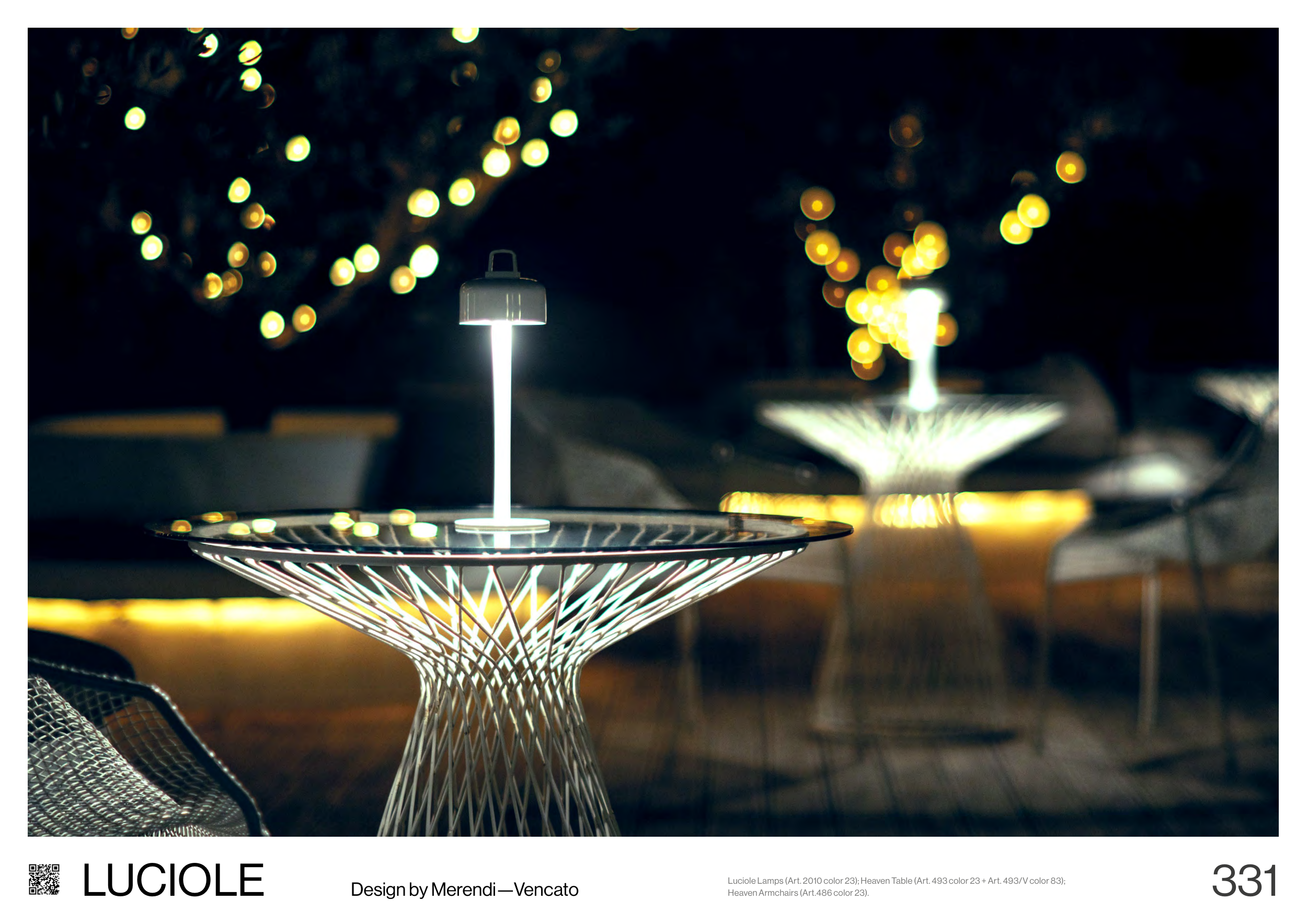 Luciole Lamps (Art. 2010 color 23); Heaven Table (Art. 493 color 23 + Art. 493/V color 83);