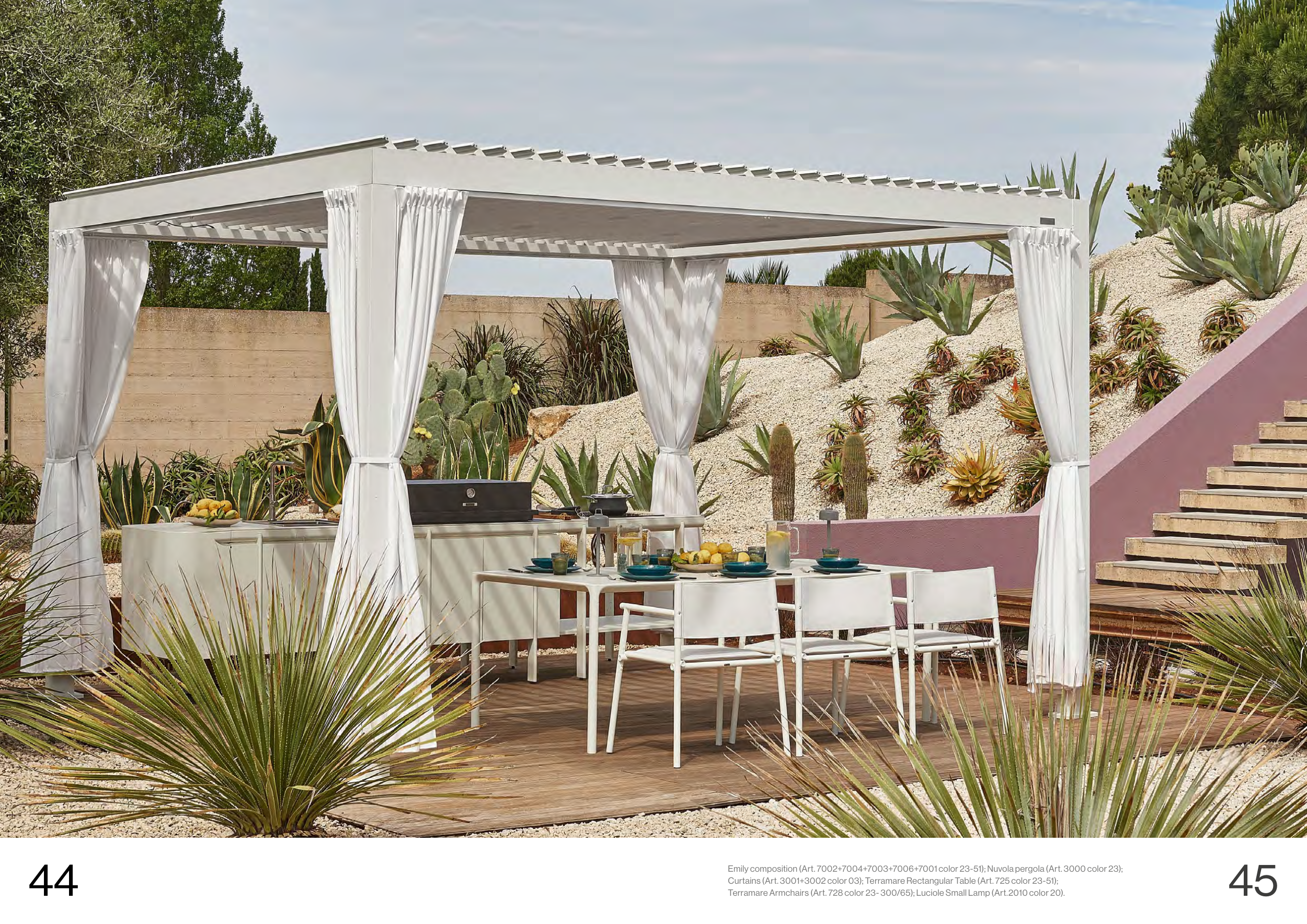 Emily composition (Art. 7002+7004+7003+7006+7001 color 23-51); Nuvola pergola (Art. 3000 color 23);