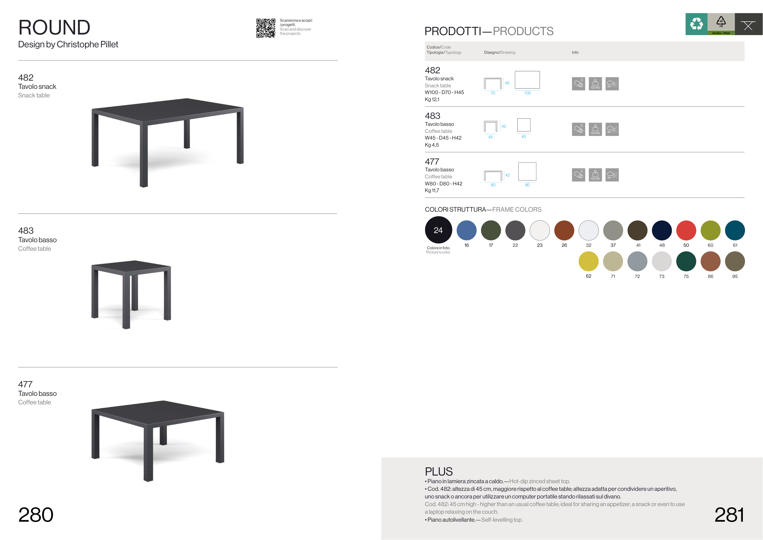 • Cod. 482: altezza di 45 cm, maggiore rispetto al coffee table; altezza adatta per condividere un aperitivo,