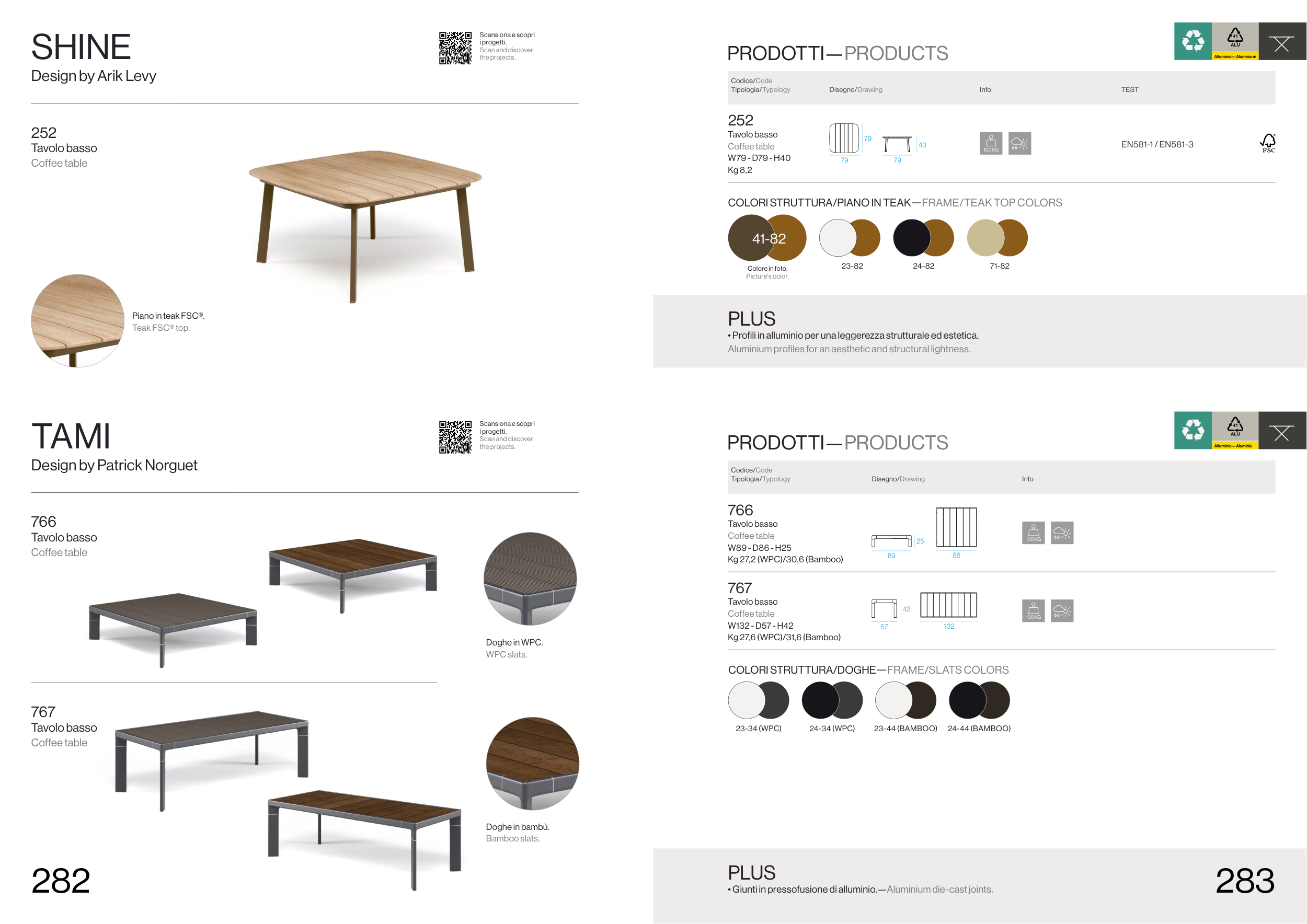COLORI STRUTTURA/PIANO IN TEAK—FRAME/TEAK TOP COLORS