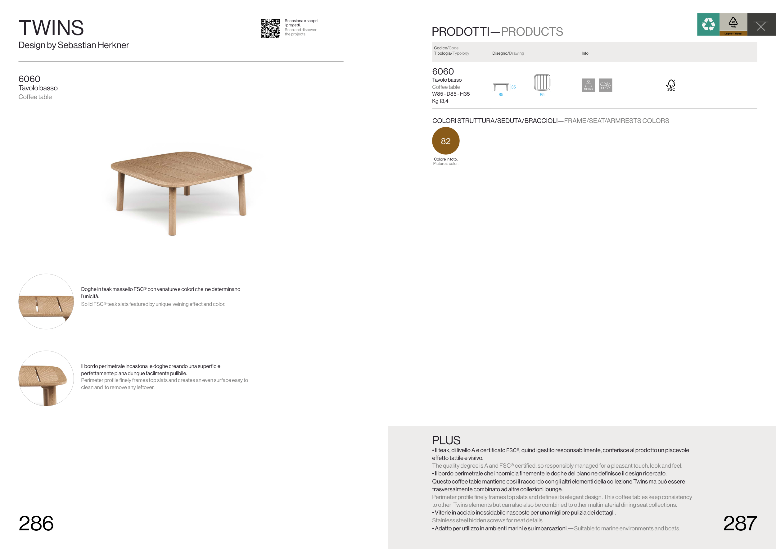 • Il teak, di livello A e certificato FSC®, quindi gestito responsabilmente, conferisce al prodotto un piacevole