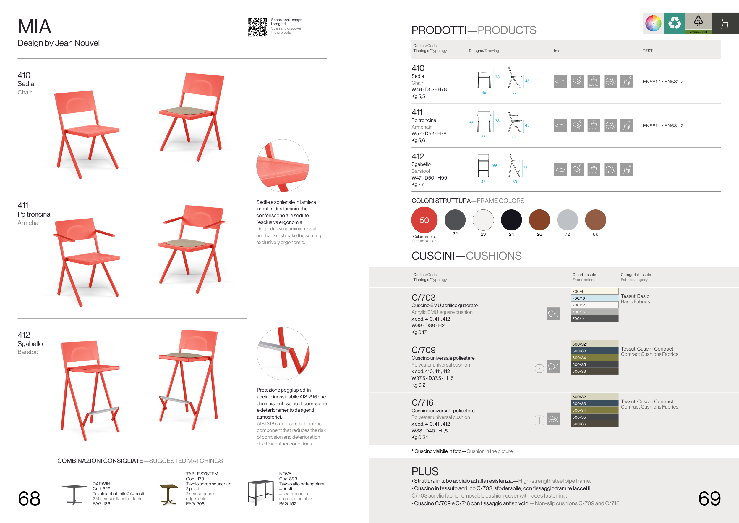 • Cuscino C/709 e C/716 con fissaggio antiscivolo.—Non-slip cushions C/709 and C/716.
