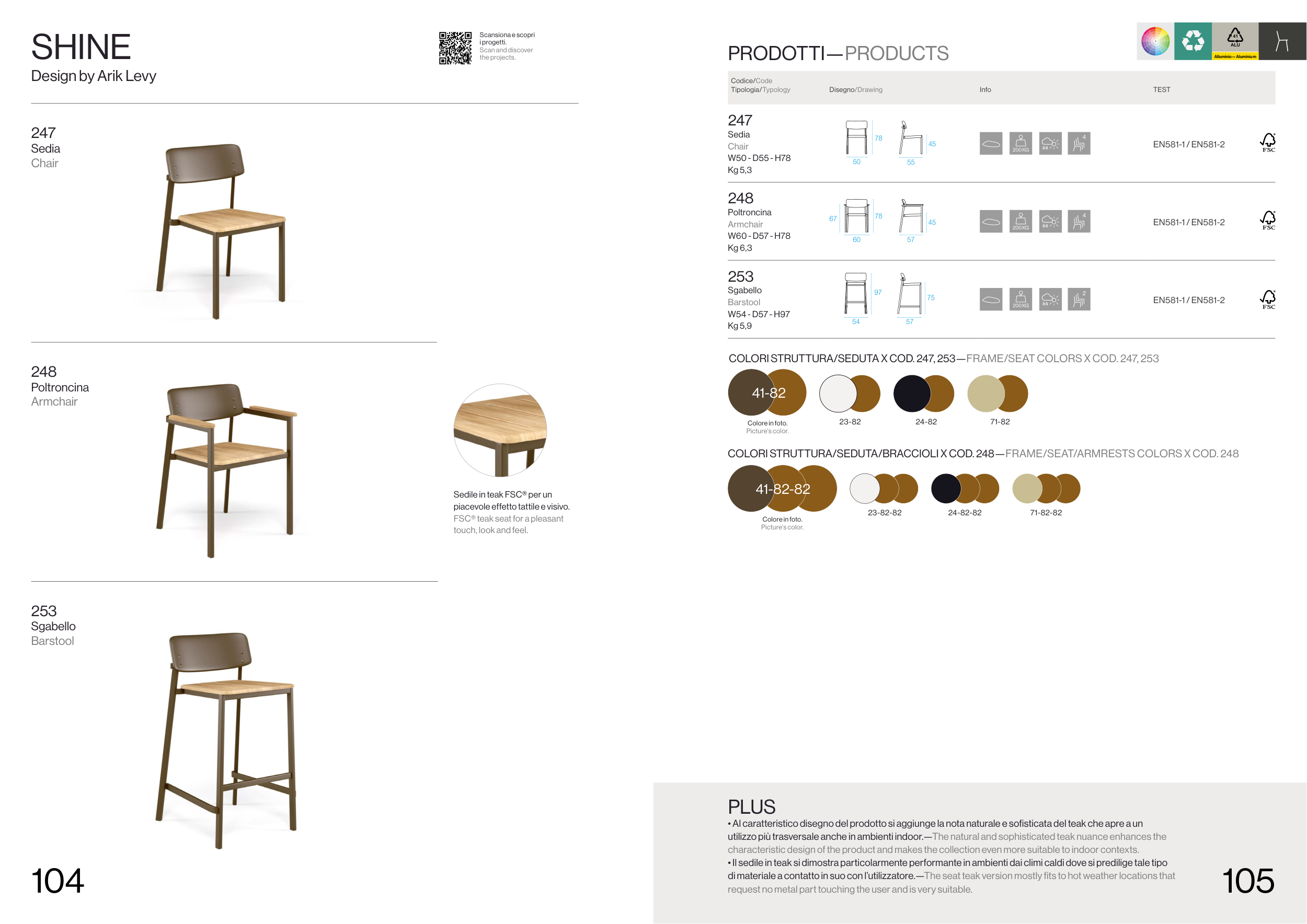 di materiale a contatto in suo con l’utilizzatore.—The seat teak version mostly fits to hot weather locations that